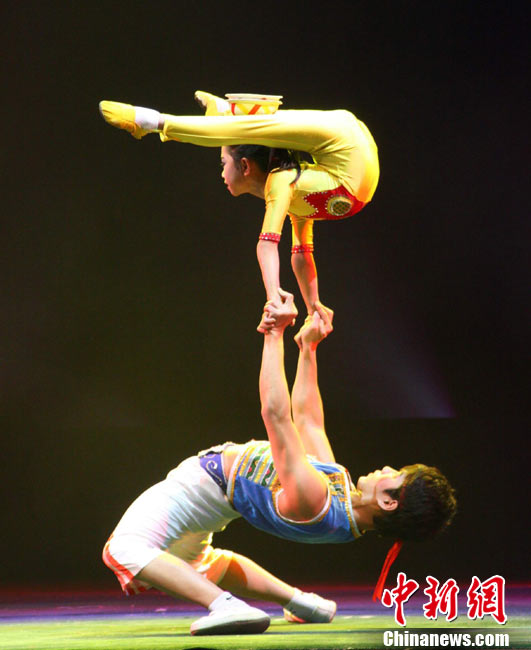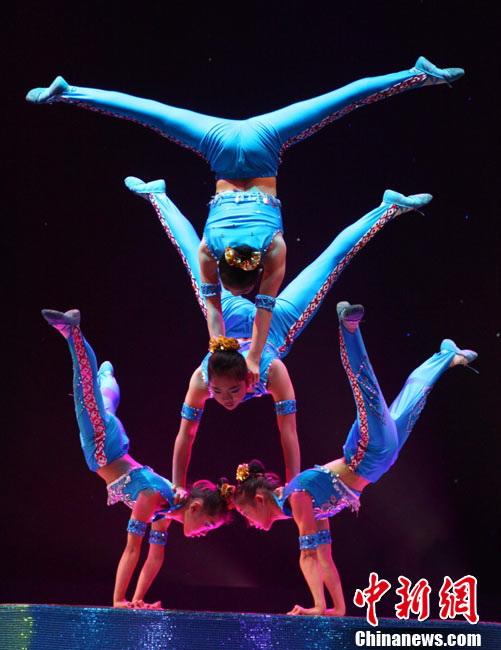 由廣西文化廳,廣西文學(xué)藝術(shù)界聯(lián)合會(huì),廣西電視臺(tái)聯(lián)合主辦的第一屆廣西雜技(魔術(shù))比賽于11月10至11日在南寧舉行。全區(qū)共有24個(gè)雜技節(jié)目,14個(gè)魔術(shù)節(jié)目報(bào)名參賽。有28個(gè)節(jié)目進(jìn)入決賽,其中雜技類16個(gè)、魔術(shù)類12個(gè)。 中新社發(fā) 曾德軍 攝