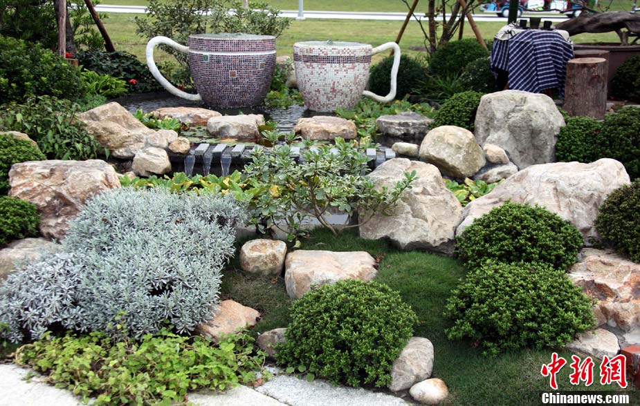 圖為在第一檔期獲得佳作獎(jiǎng)的造園景觀藝術(shù)作品《方庭》。 中新社記者 王健 攝