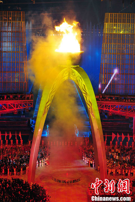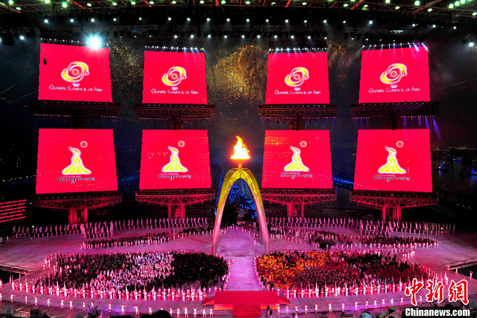 第16屆亞運(yùn)會(huì)11月12日晚在廣州開幕,圖為亞運(yùn)會(huì)主火炬點(diǎn)燃。中新社記者 湯彥俊 攝