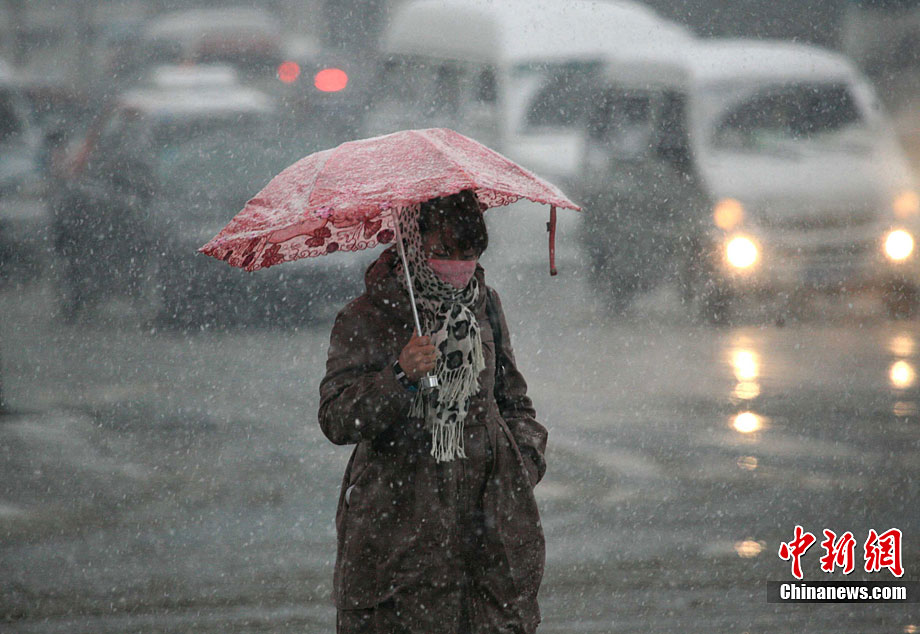 11月13日,遼寧沈陽普降大雪,市民出行不便。圖片來源:CNSPHOTO 黃金昆 攝