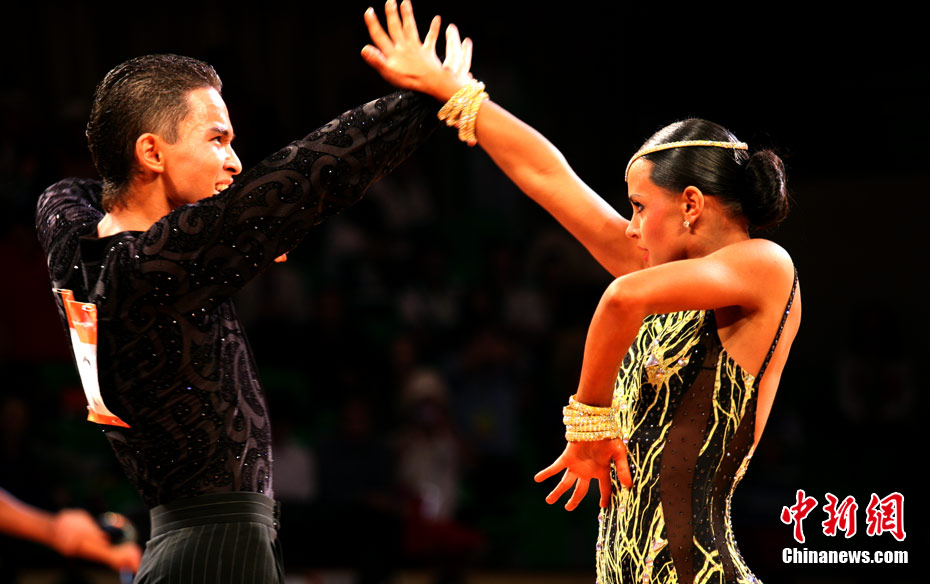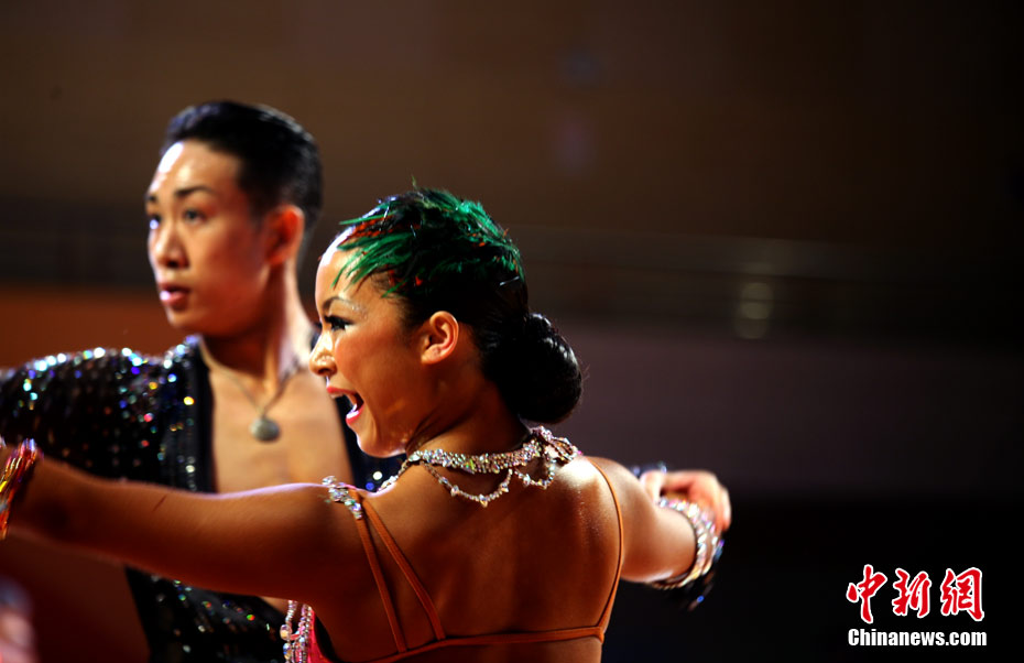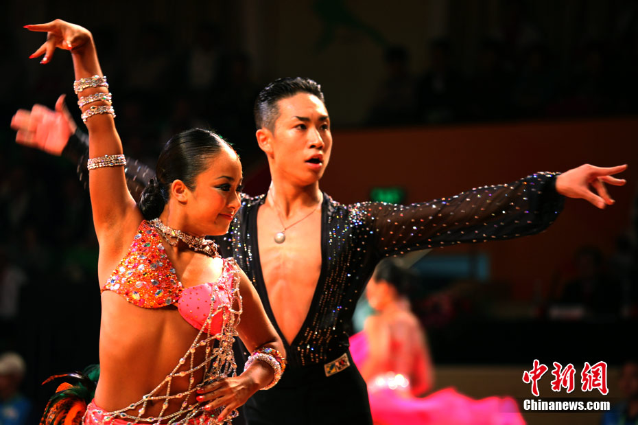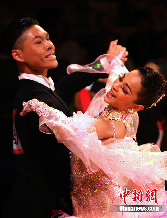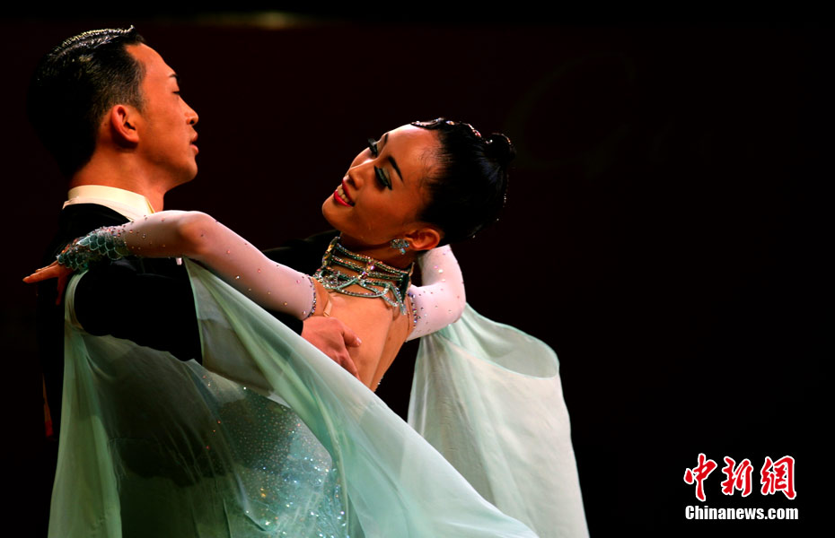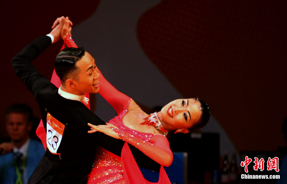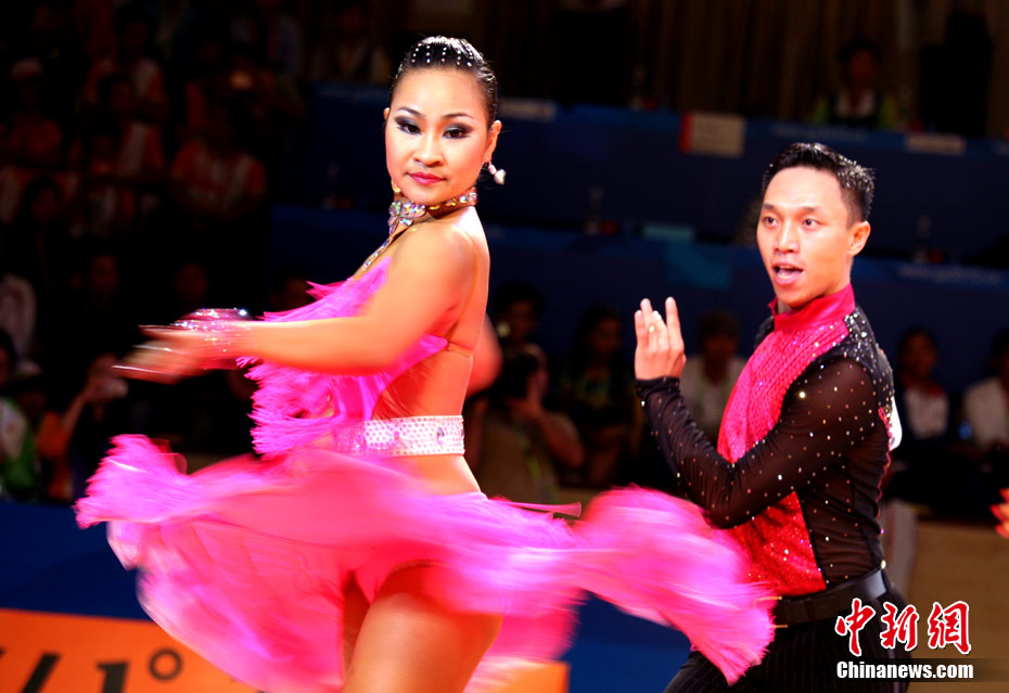 11月13日,首次成為亞運會正式比賽項目的體育舞蹈比賽在廣州增城體育館拉開帷幕。來著亞洲的頂尖舞者將在兩天的時間里角逐十個項目的金牌。選手們首先在標準舞華爾茲、探戈、狐步、快步和拉丁5項舞五個項目中給觀眾帶來美輪美奐的享受。中新社記者 張茵 攝