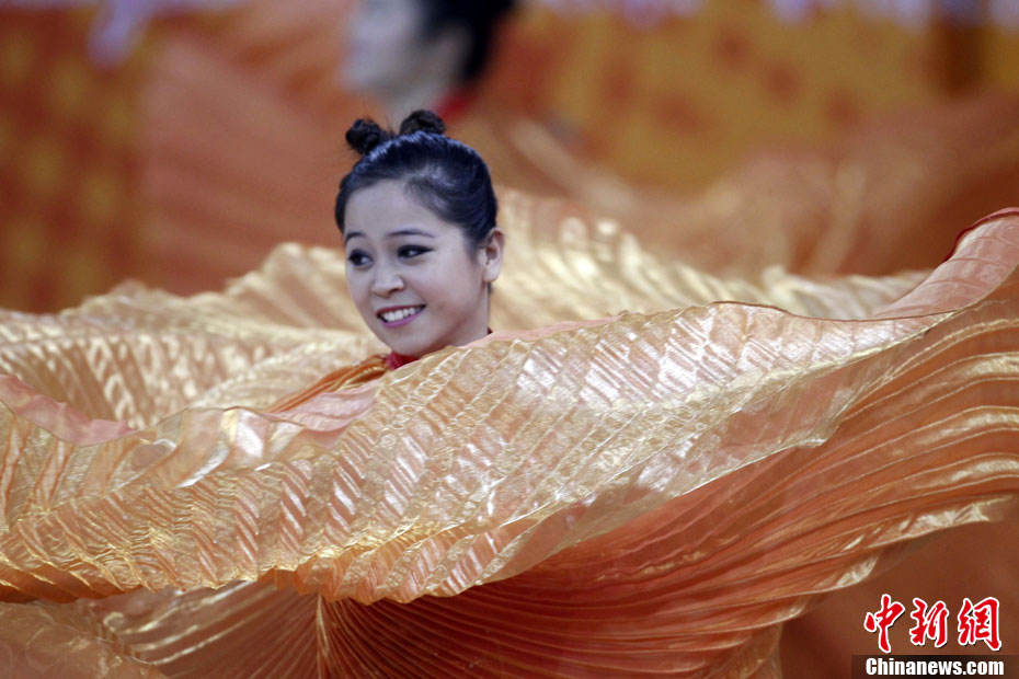 11月14日,廣州亞運(yùn)各項(xiàng)精彩賽事繼續(xù)進(jìn)行,組委會(huì)在比賽間隙舉辦各種精彩的文藝表演,調(diào)動(dòng)賽場(chǎng)氣氛。 中新社記者 王東明 攝