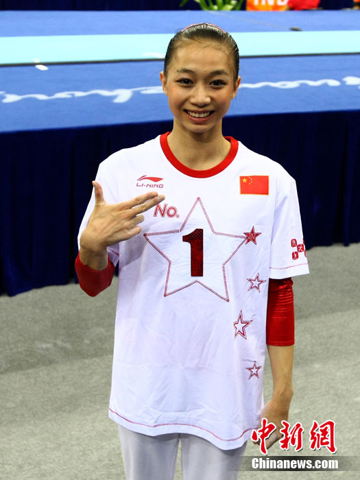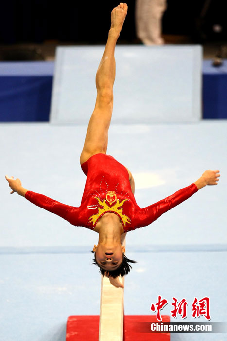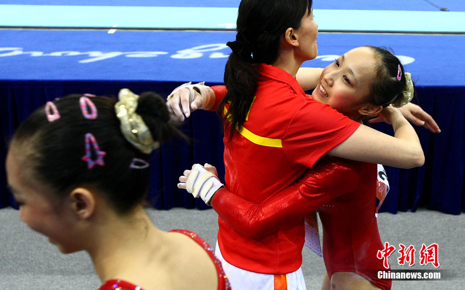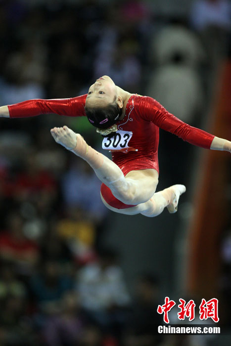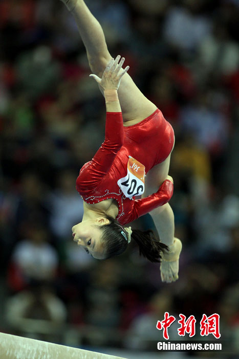 11月14日,在廣州亞運(yùn)會女子體操團(tuán)體決賽中,中國隊擊敗日本隊奪冠,實現(xiàn)了亞運(yùn)會的“十連冠”。中新社記者 富田 攝