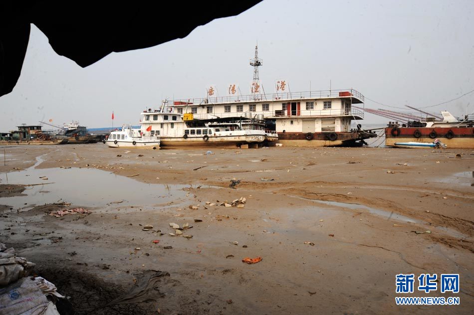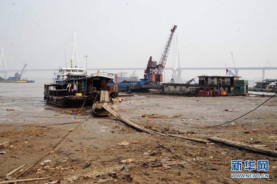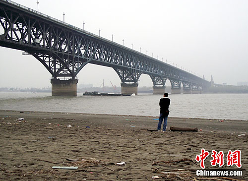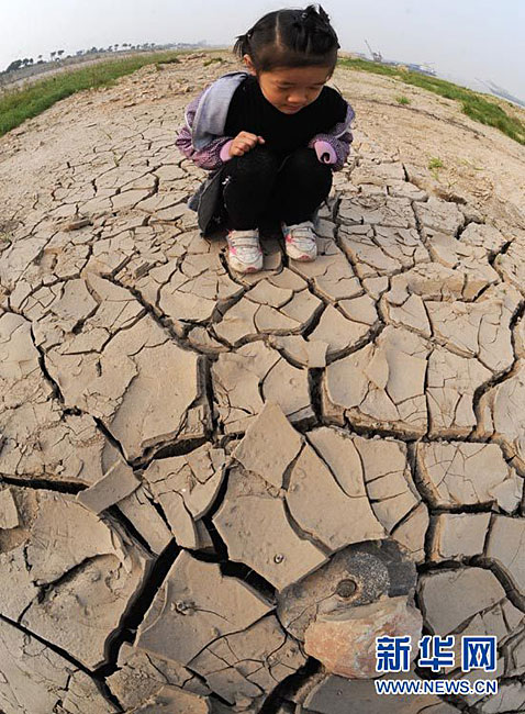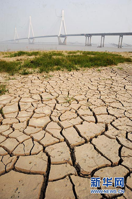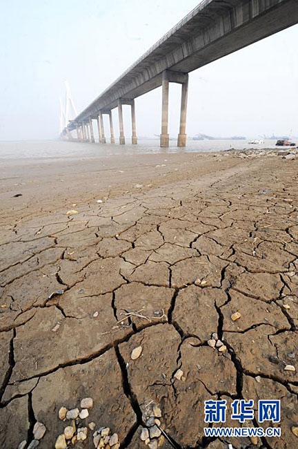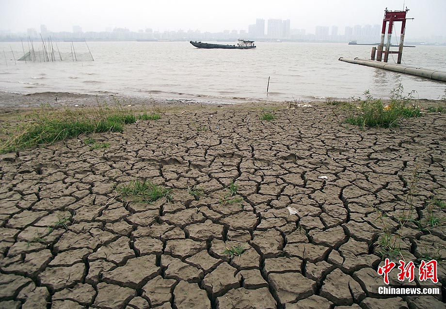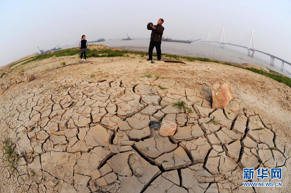 截至2010年11月14日17時(shí),長江南京段水位降至4.08米,大片江岸河床裸露。近期,受中上游枯水和區(qū)域降雨量減少等因素影響,長江南京段水位連續(xù)下降。圖為11月14日,長江南京段南側(cè)江岸河床裸露,土層龜裂。圖片來源:CNSPHOTO 安東 攝