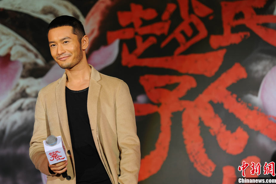 11月15日,賀歲檔大片《趙氏孤兒》群星閃耀媒體見面會在北京盛大舉辦。導(dǎo)演陳凱歌攜主演葛優(yōu)、王學(xué)圻、黃曉明、范冰冰、趙文卓、海清、趙文浩出席。葛優(yōu)、王學(xué)圻飾演的程嬰和屠岸賈在片中有諸多較量,此前傳聞兩位大腕暗自使勁、互相飚戲。為了打破傳言,現(xiàn)場葛優(yōu)、王學(xué)圻上演“親密熊抱”,王學(xué)圻出人意料的“背摔”讓葛優(yōu)險些摔倒在地,F(xiàn)場氣氛熱烈,笑聲不斷。中新社記者 李學(xué)仕 攝