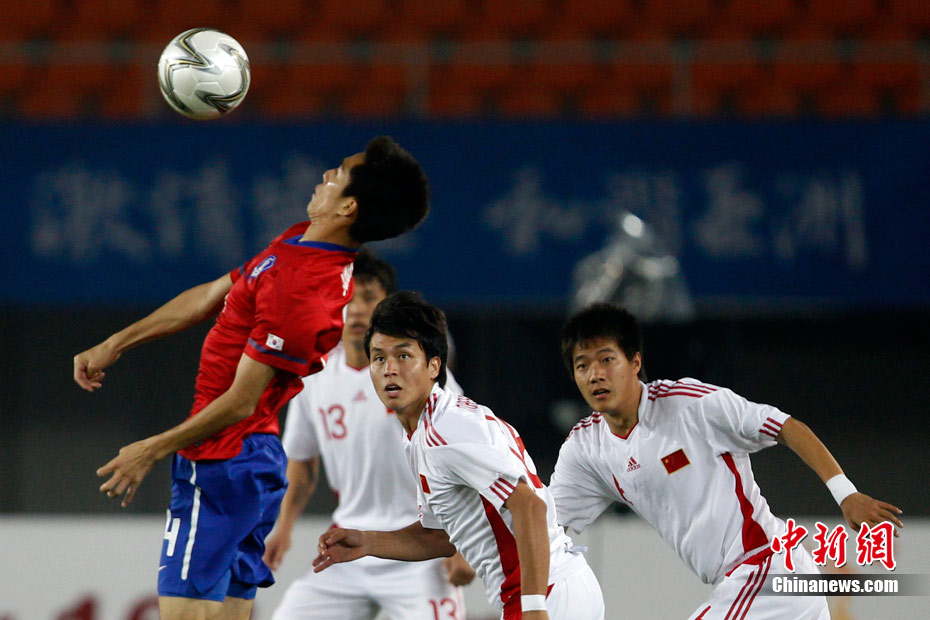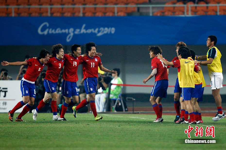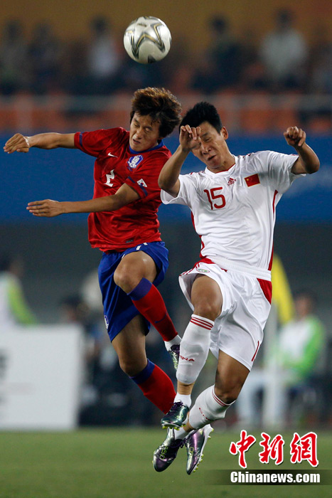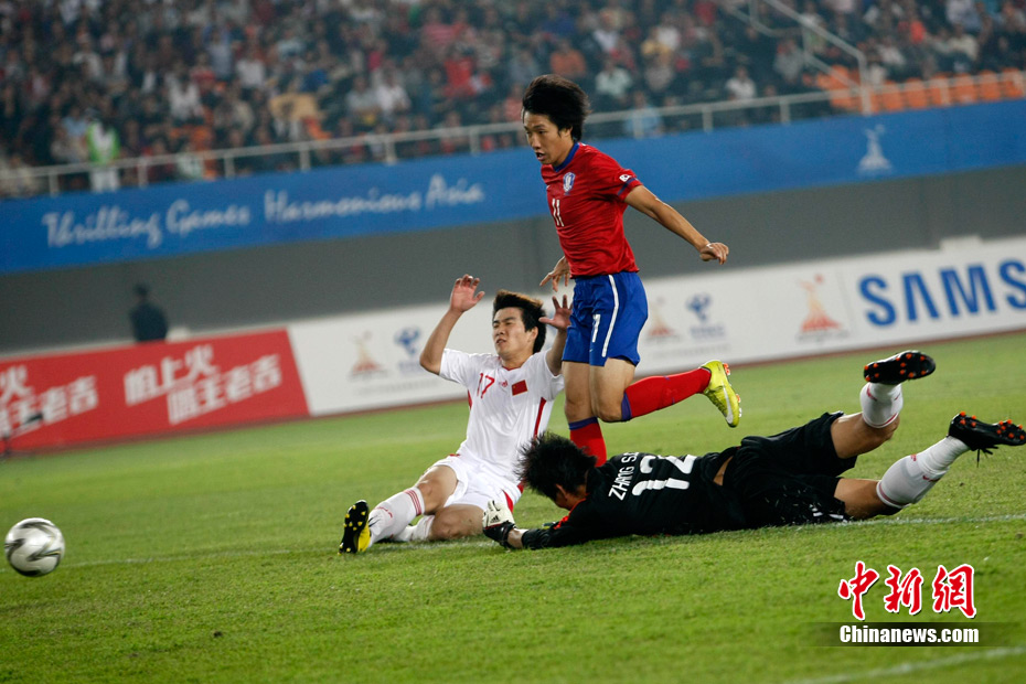 11月15日晚,2010廣州亞運會男子足球1/8決賽中國隊與韓國隊的比賽在廣州天河體育場進(jìn)行,最終中國隊0:3不敵對手,止步16強(qiáng)。 中新社記者 盛佳鵬 攝