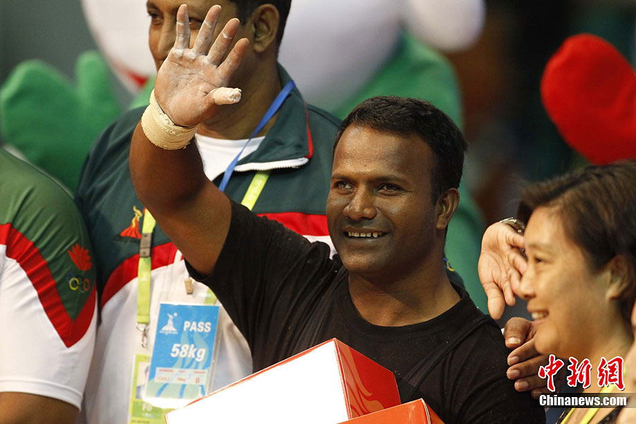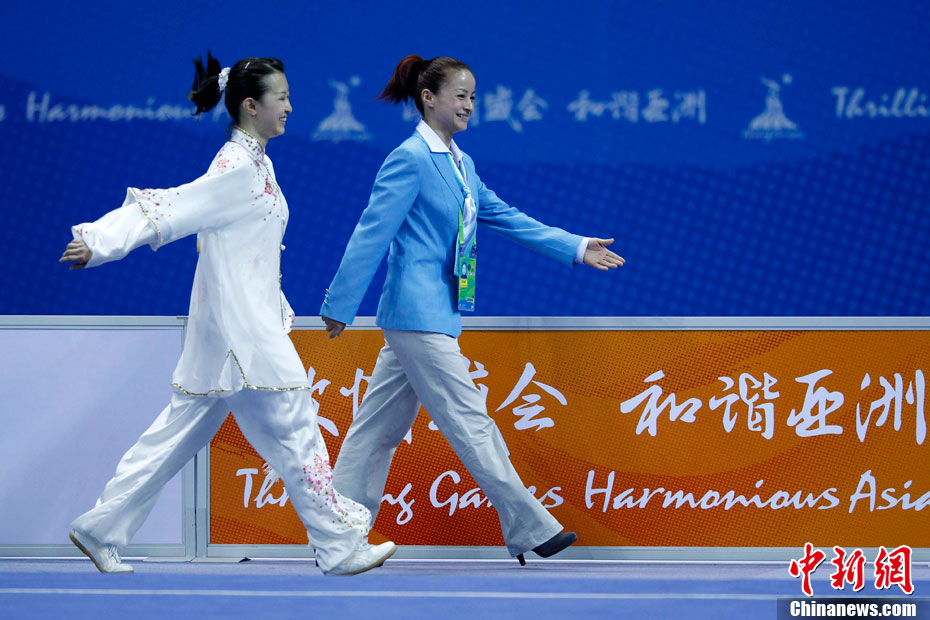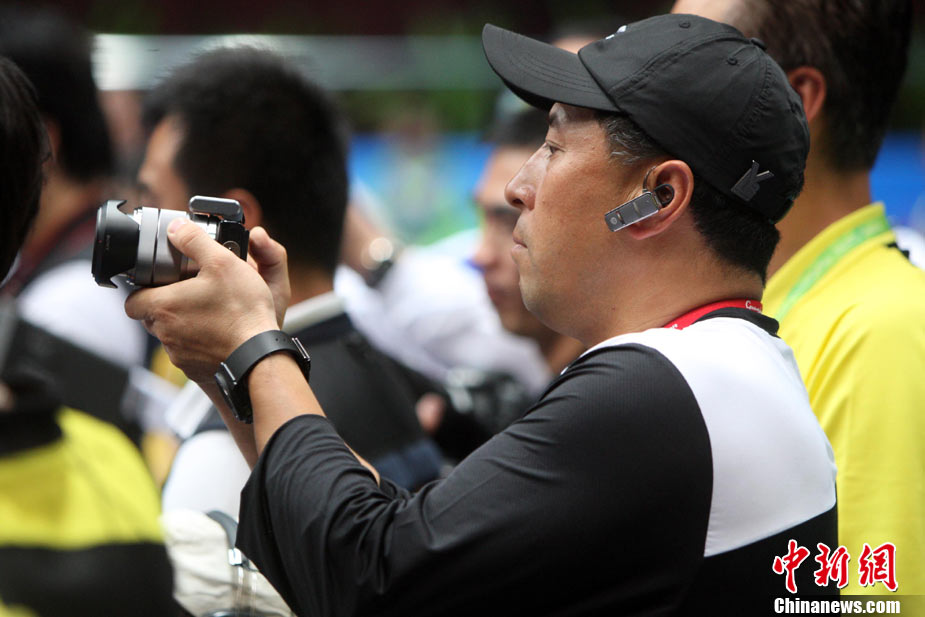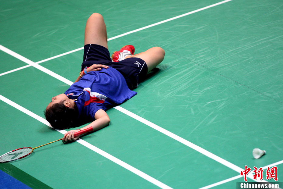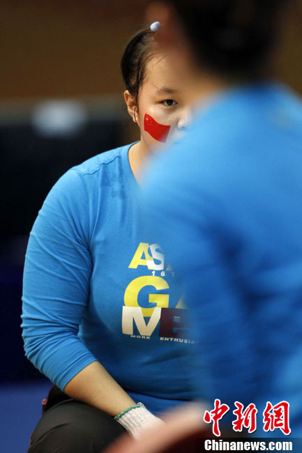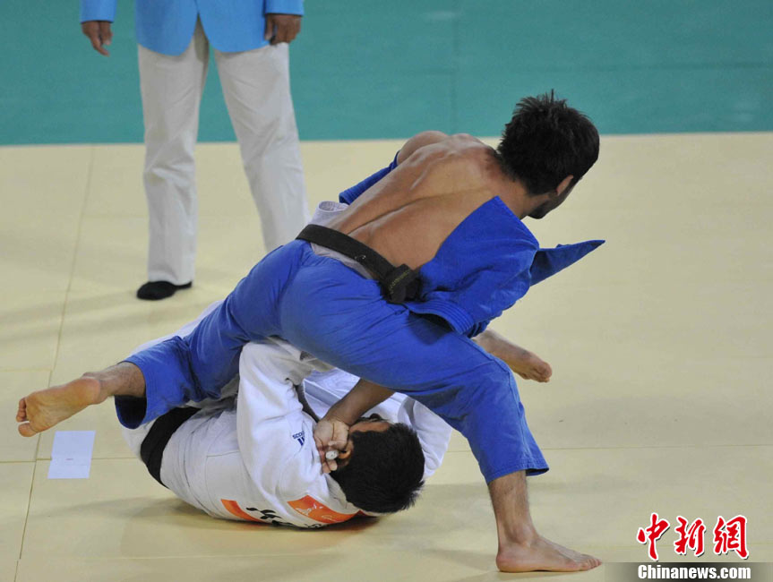 11月15日晚舉行的柔道女子57公斤級(jí)決賽上,韓國(guó)選手金珍迪在較量中遺失了隱形眼鏡,不得不暫停比賽四處尋找,最后被日本選手松本薰擊敗。 圖為韓國(guó)選手金珍迪找到了隱形眼鏡。中新社記者 柯小軍 攝