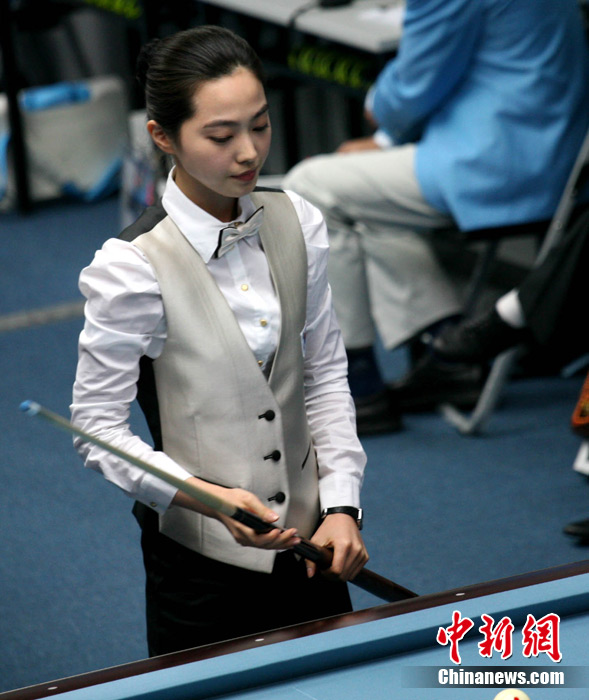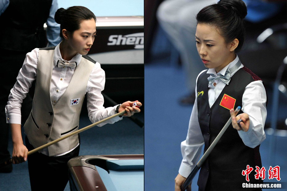 11月15日,女子美式九球單打預(yù)賽,來自中國的潘曉婷和來自韓國的車侑藍(車俞嵐)分別戰(zhàn)勝對手,晉級下一輪,兩位知名選手的亮相,掀起場內(nèi)的“美麗風暴”。