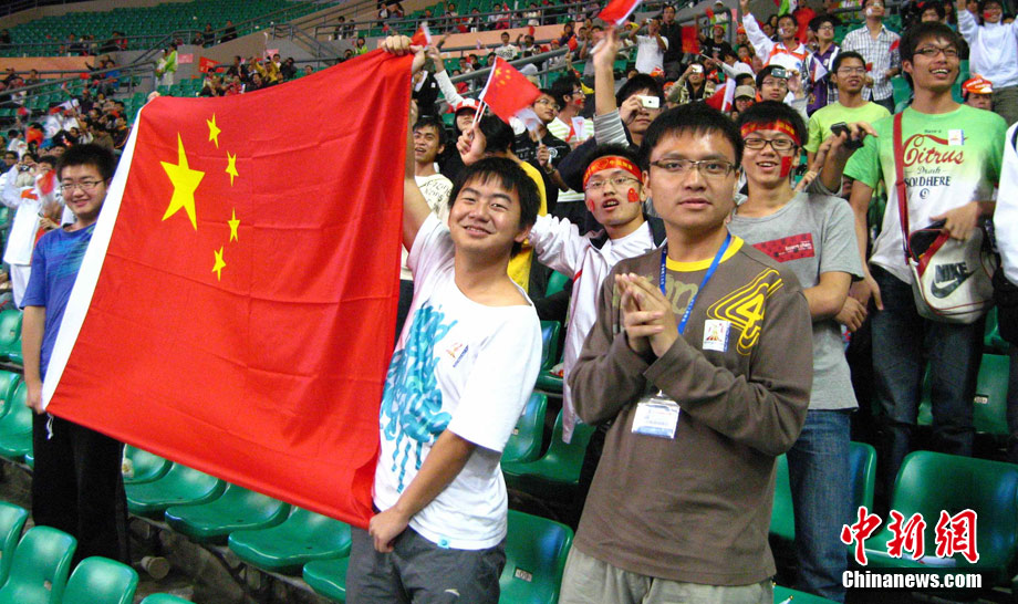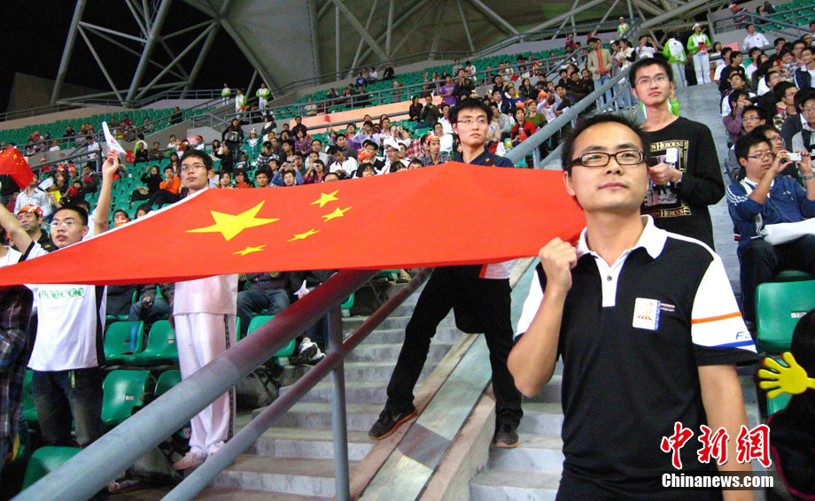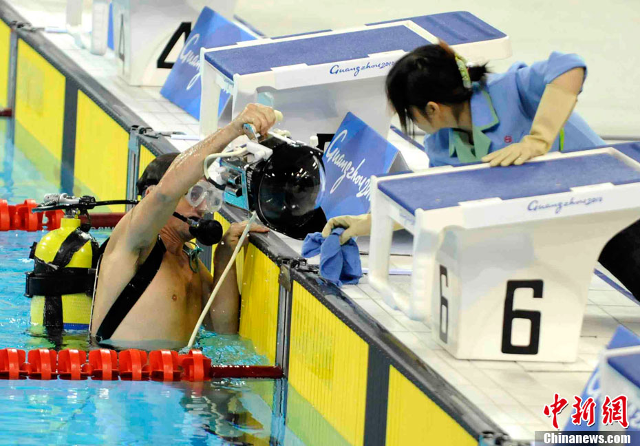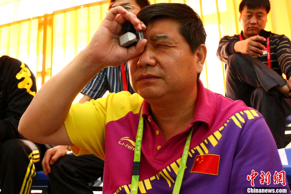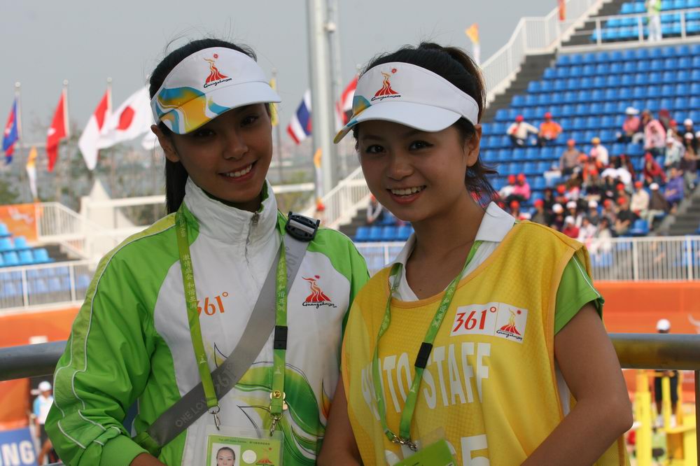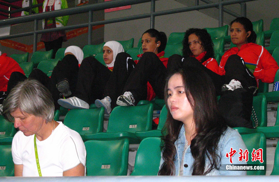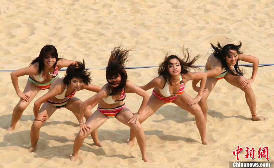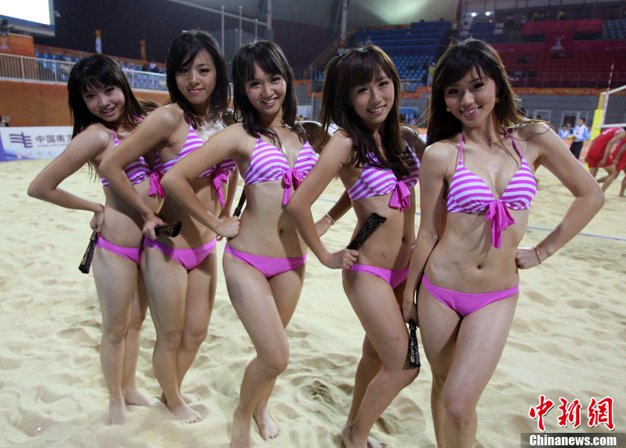 11月16日,在廣州亞運會沙灘排球賽場上,一群身穿比基尼擁有火辣身材的“沙灘寶貝”成為賽場邊一道美麗風景。 中新社記者 湯彥俊 攝