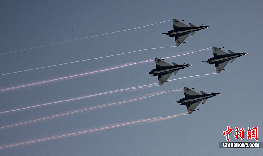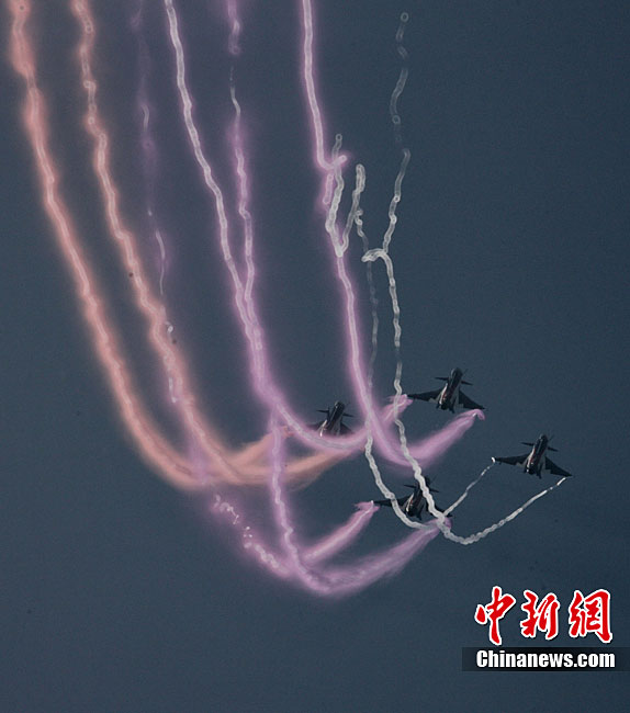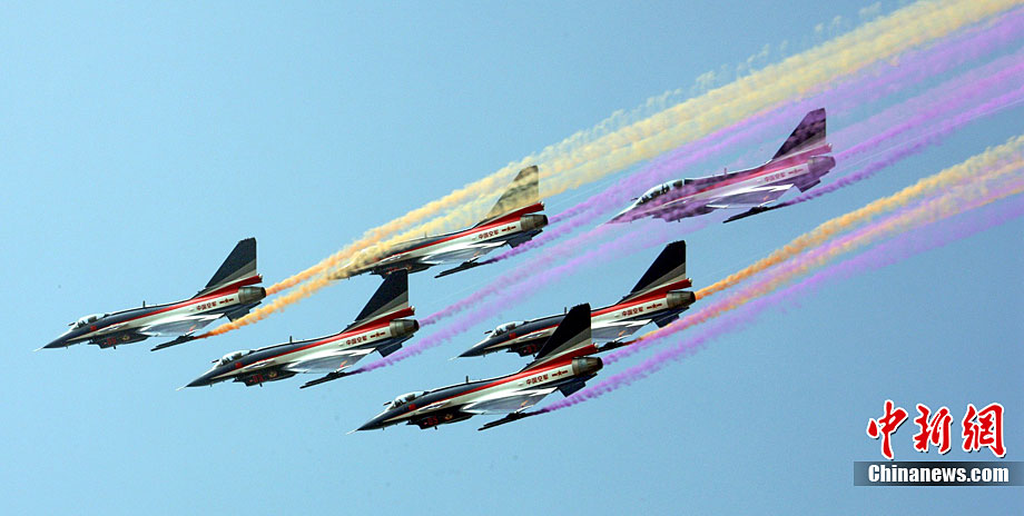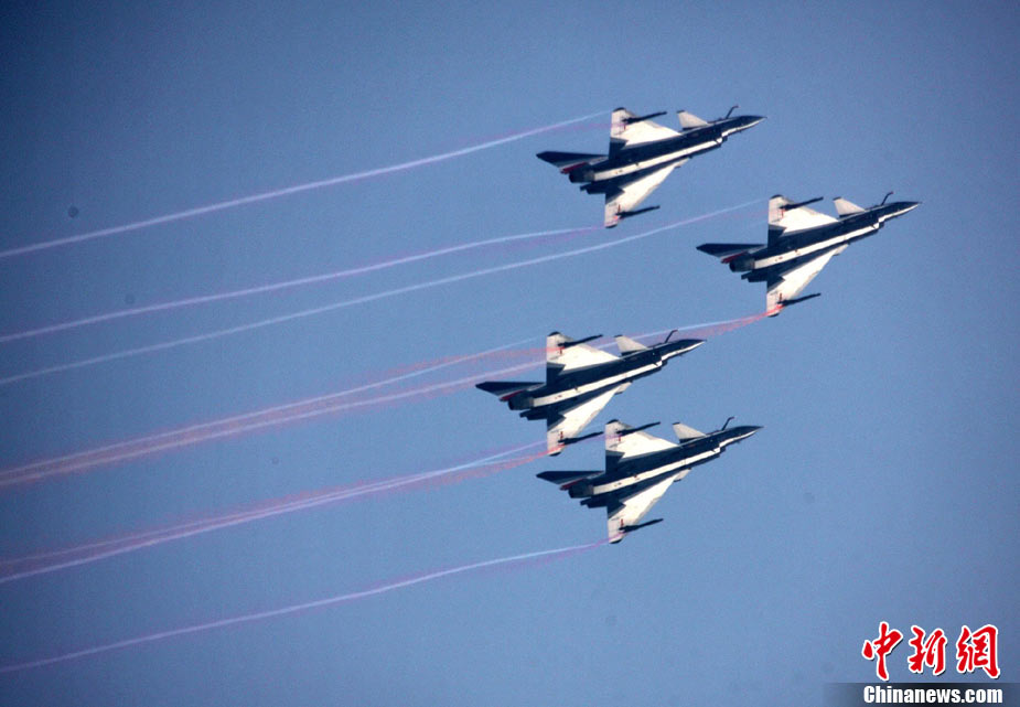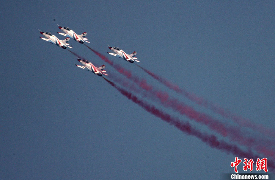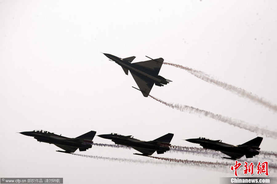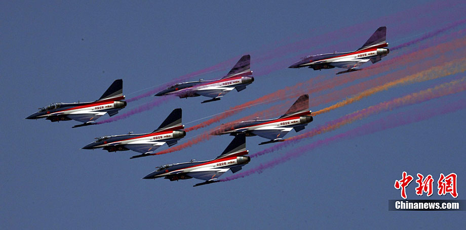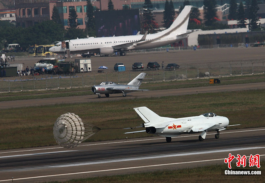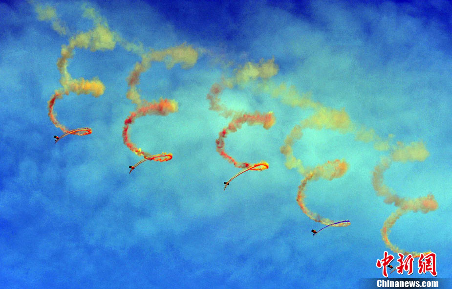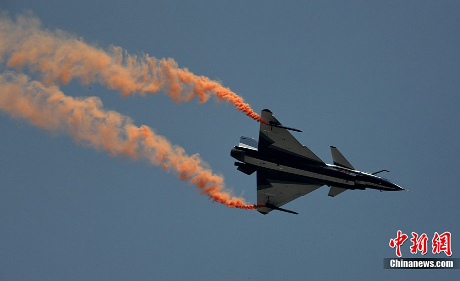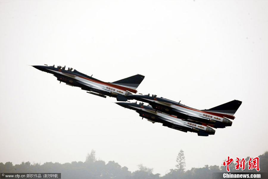 11月17日,在珠海第8屆中國(guó)國(guó)際航空航天博覽會(huì)上,中航公司組織中國(guó)獲獎(jiǎng)十佳空中乘務(wù)員,向殲10飛機(jī)總設(shè)計(jì)師、剛做完飛行表演的空軍八一飛行表演隊(duì)的空中英豪們獻(xiàn)上鮮花。圖片來源:CNSPHOTO 喬天富 攝