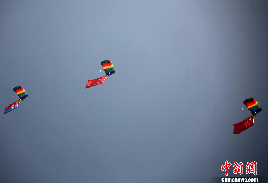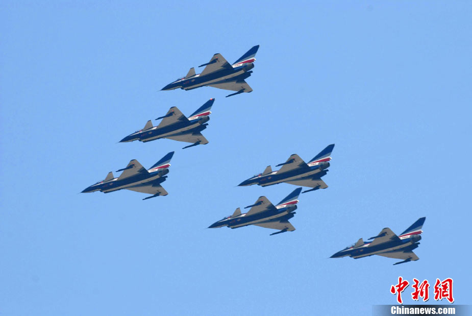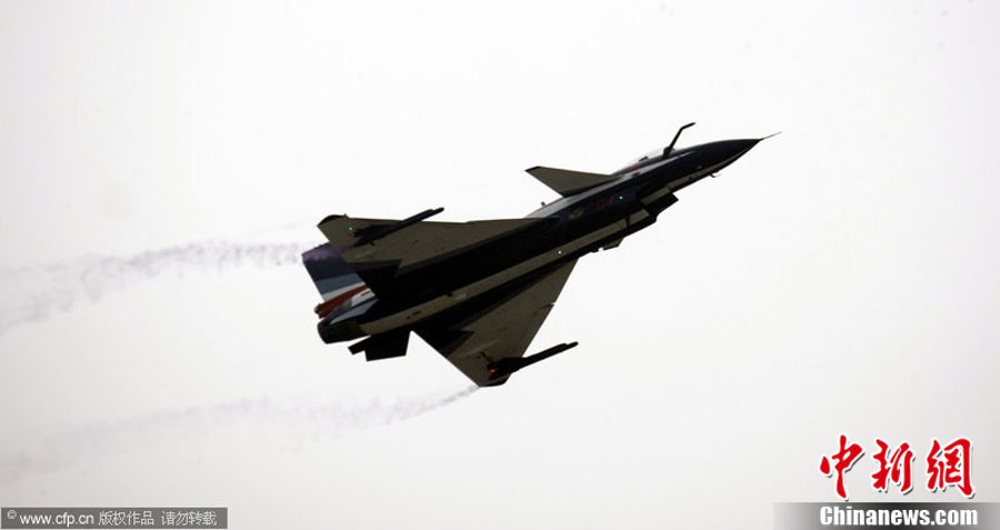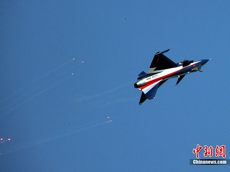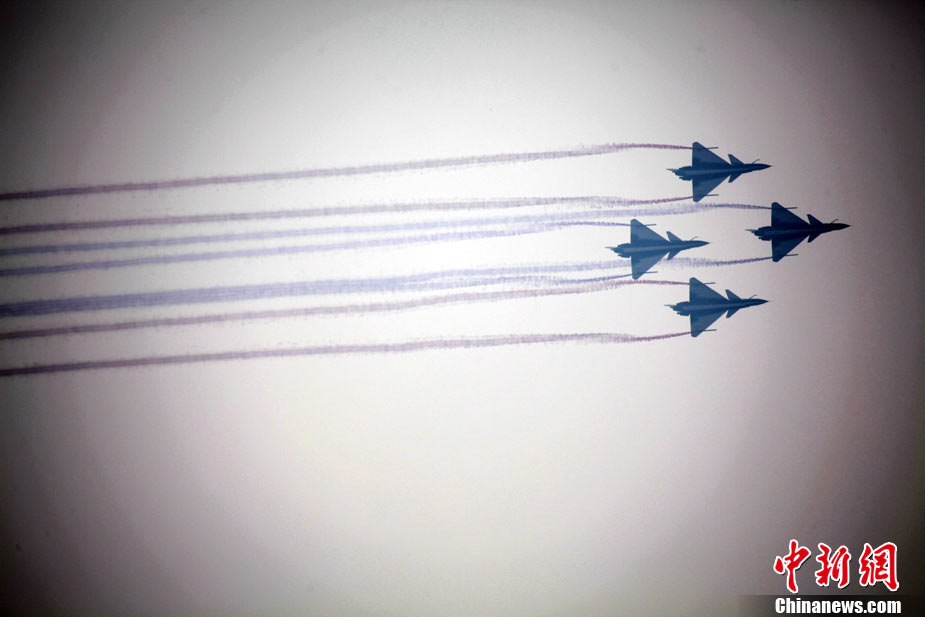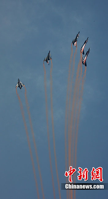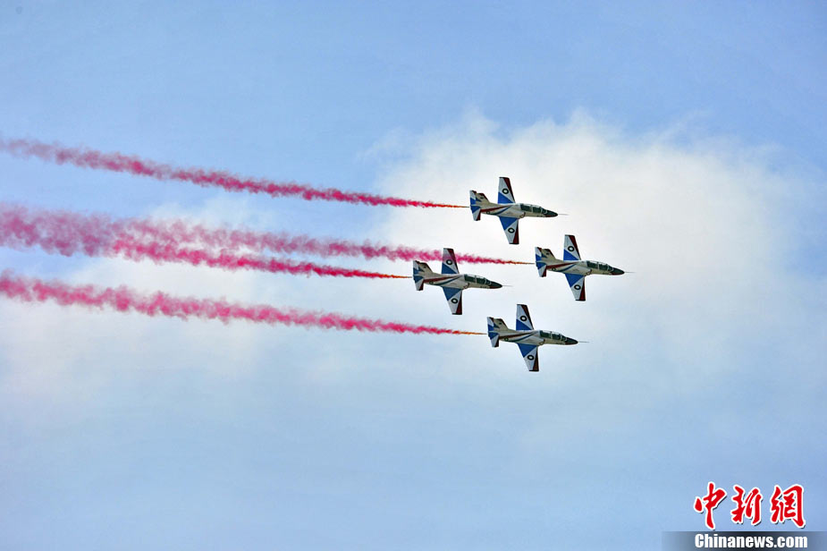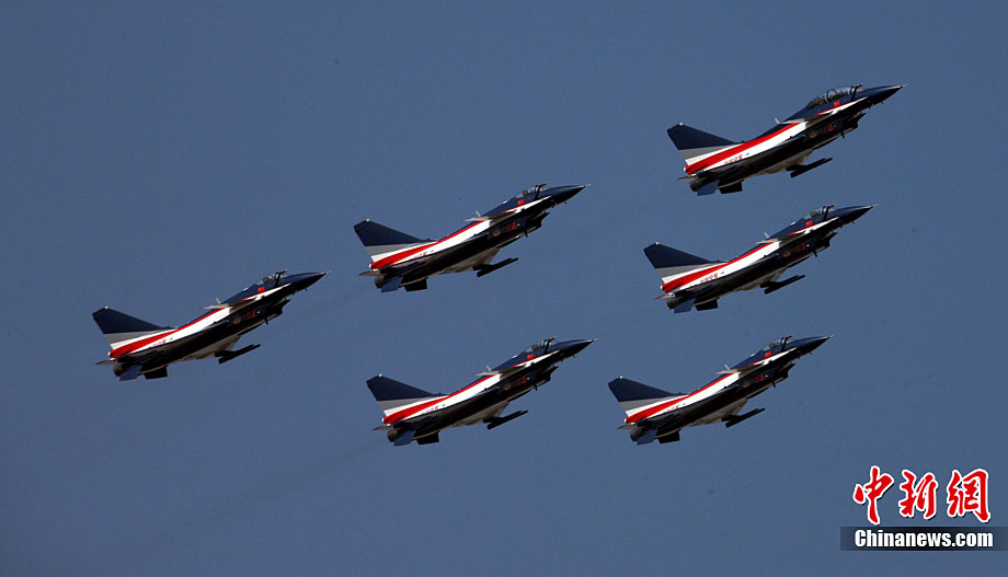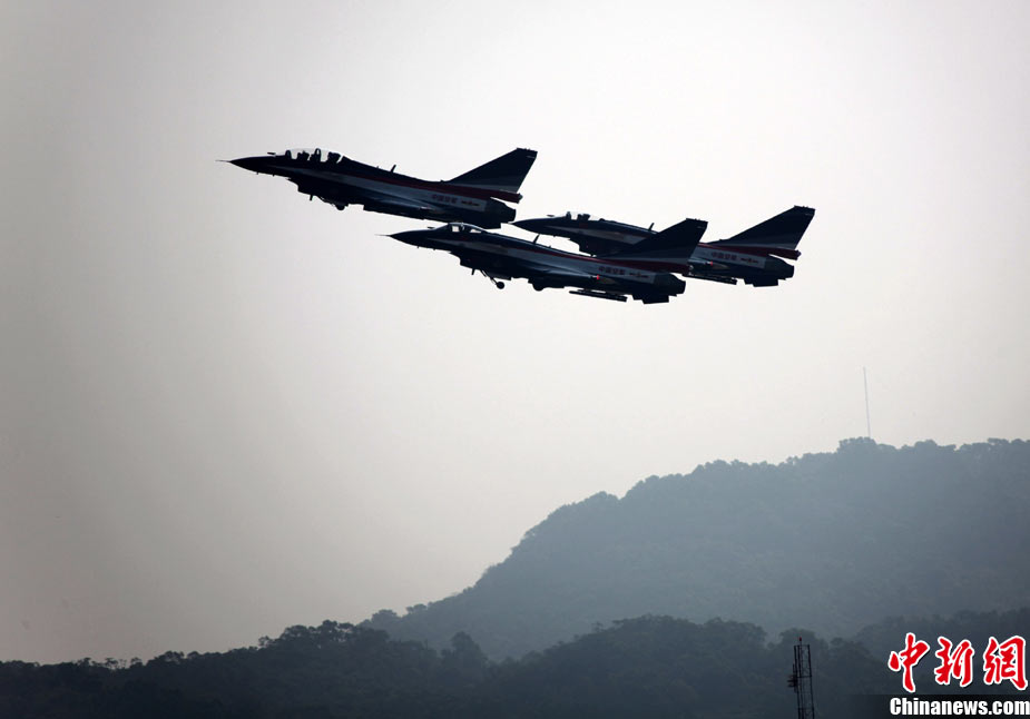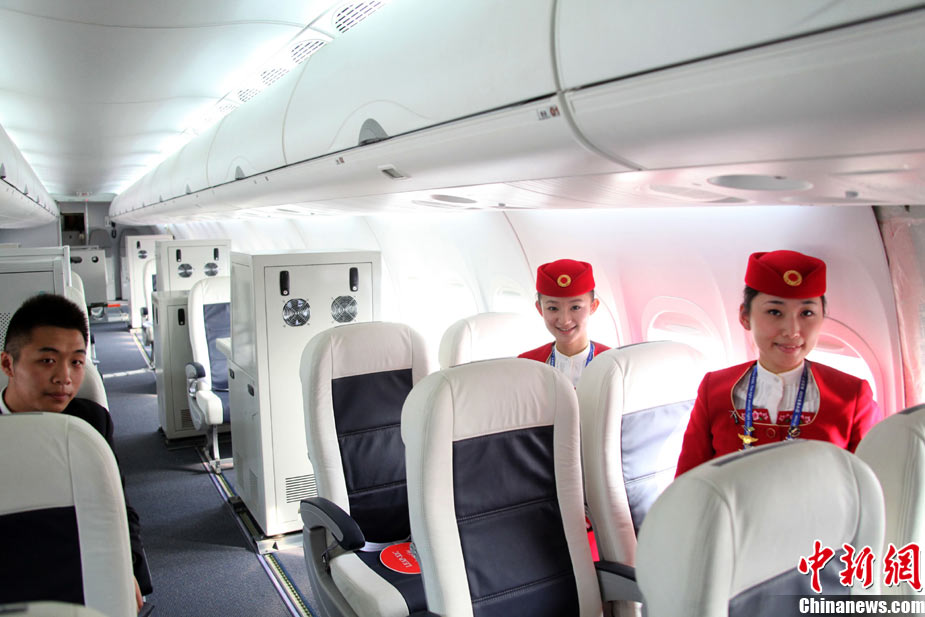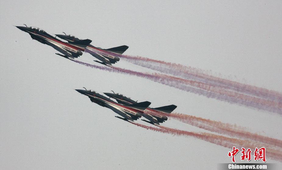 11月17日,在珠海第8屆中國(guó)國(guó)際航空航天博覽會(huì)上,中航公司組織中國(guó)獲獎(jiǎng)十佳空中乘務(wù)員,向殲10飛機(jī)總設(shè)計(jì)師、剛做完飛行表演的空軍八一飛行表演隊(duì)的空中英豪們獻(xiàn)上鮮花。圖片來源:CNSPHOTO 喬天富 攝