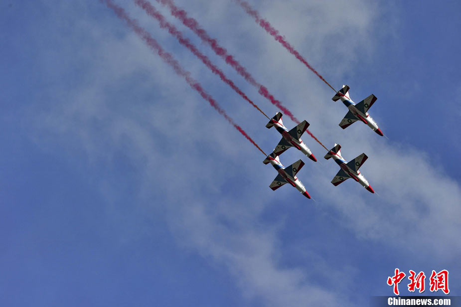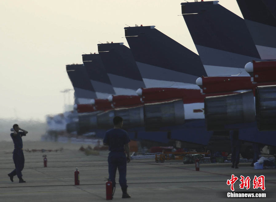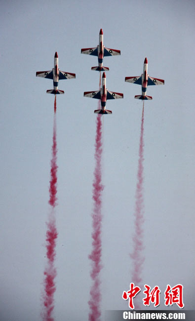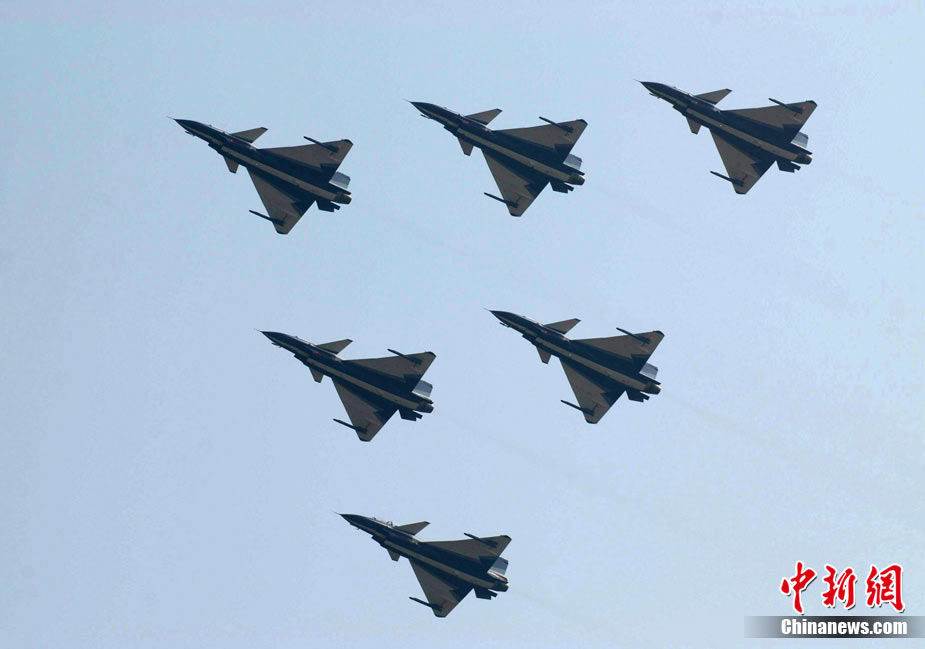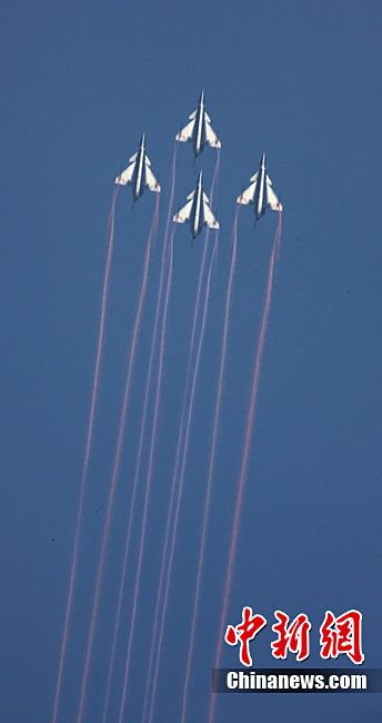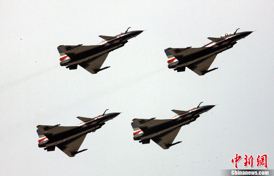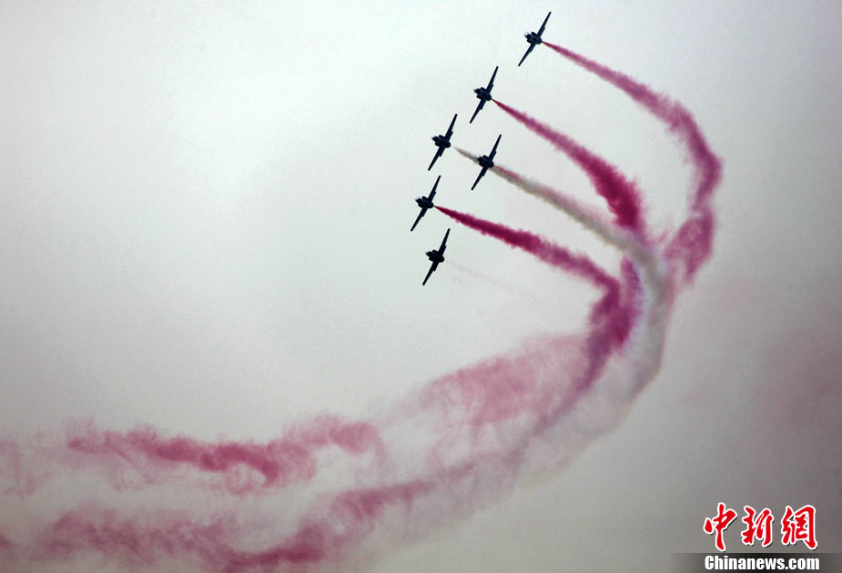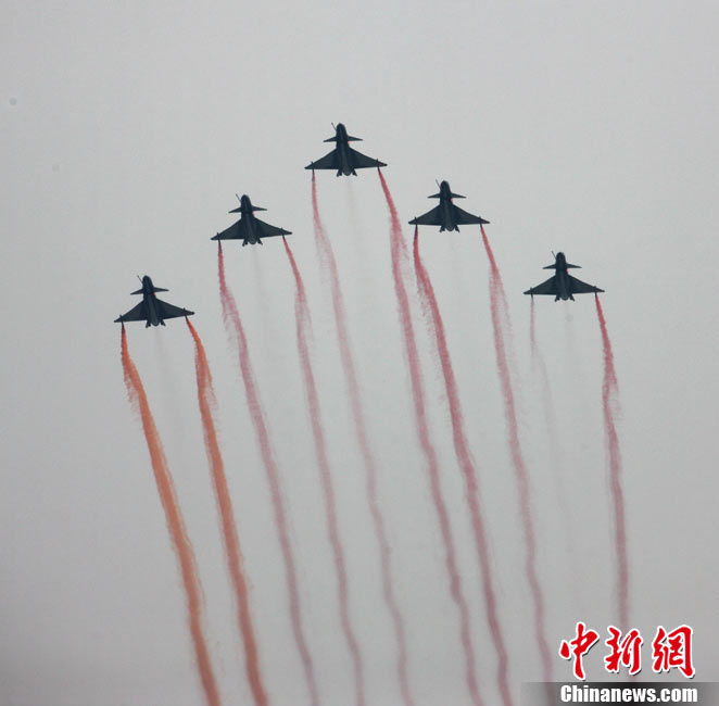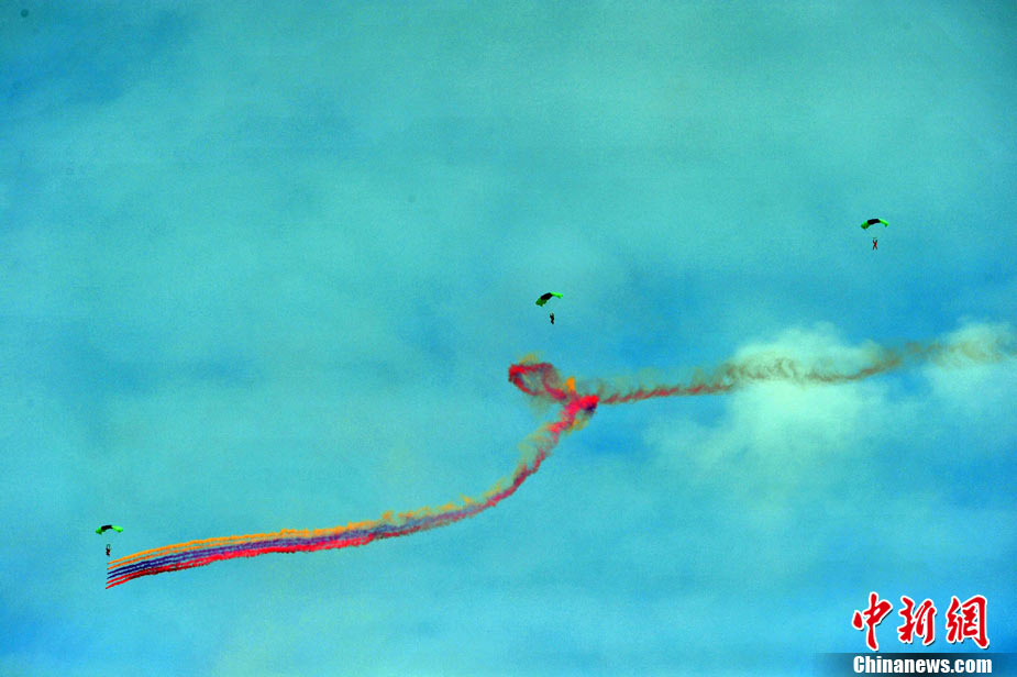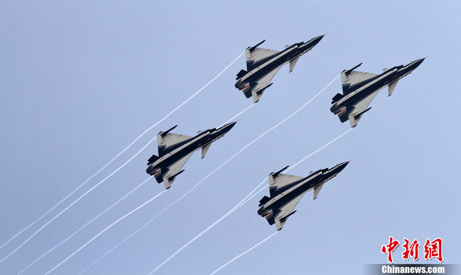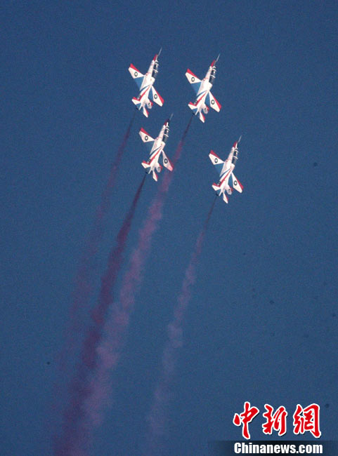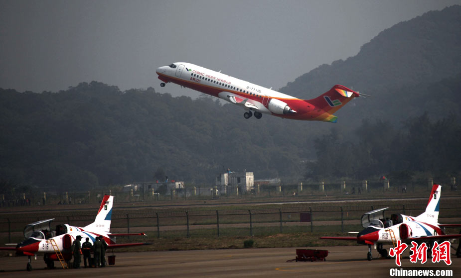 11月17日,在珠海第8屆中國(guó)國(guó)際航空航天博覽會(huì)上,中航公司組織中國(guó)獲獎(jiǎng)十佳空中乘務(wù)員,向殲10飛機(jī)總設(shè)計(jì)師、剛做完飛行表演的空軍八一飛行表演隊(duì)的空中英豪們獻(xiàn)上鮮花。圖片來源:CNSPHOTO 喬天富 攝