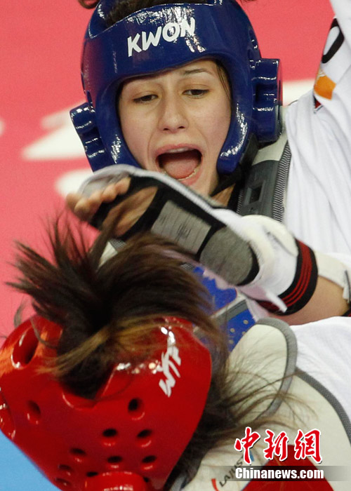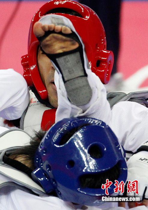 11月17日,亞運(yùn)會(huì)跆拳道項(xiàng)目開(kāi)賽,跆拳道以腿攻擊為主,以手為輔,騰空、旋踢腳法的使用讓該項(xiàng)目觀賞性極強(qiáng)。圖為跆拳道賽場(chǎng)上一些精彩的瞬間。中新社記者 杜洋 攝