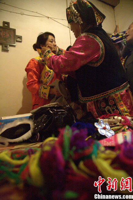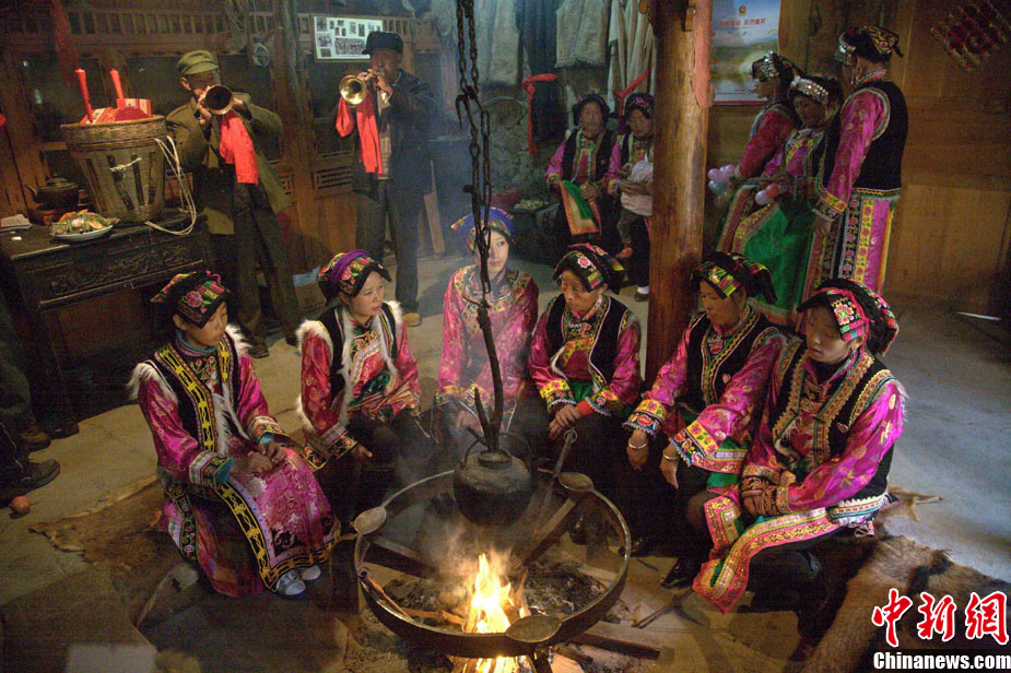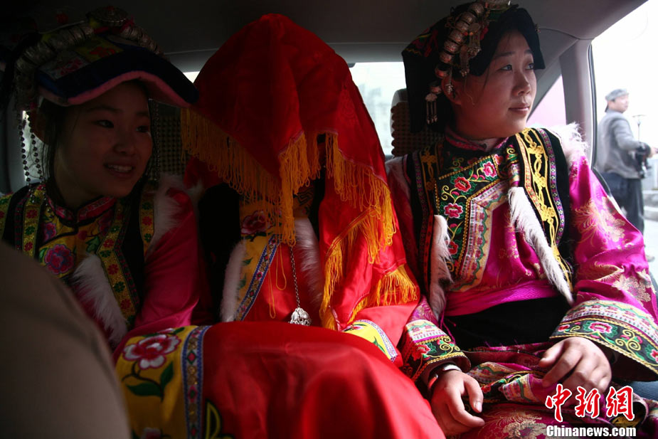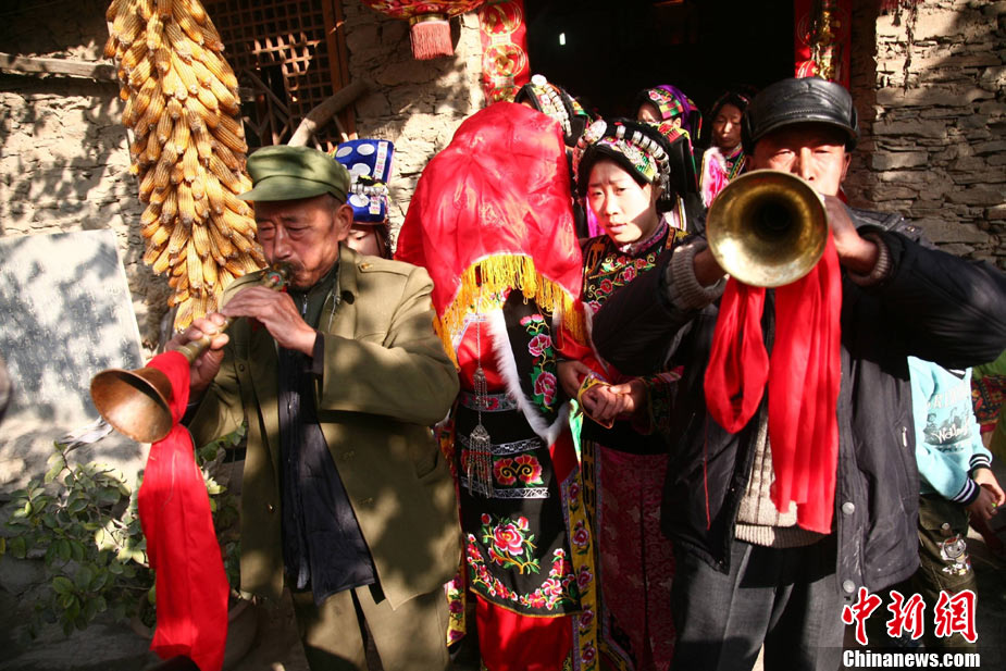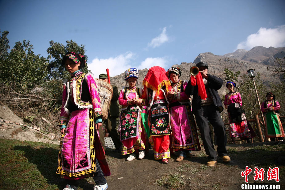 四川羌寨舉行原生態(tài)羌族婚禮迎親
