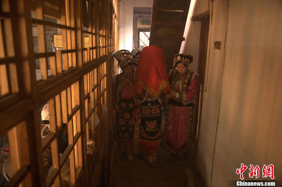 近日,四川省阿壩藏族羌族自治州理縣境內(nèi)的桃坪羌寨舉行傳統(tǒng)婚禮,羌族小伙子楊韋和羌族姑娘張艷菊結(jié)為夫妻,一大早迎親隊(duì)伍便抵達(dá)羌寨準(zhǔn)備將新娘迎接到九寨溝。羌族人,自稱爾瑪人,主要分布于四川省阿壩藏族羌族自治州東部、綿陽(yáng)北川縣等地,羌族人有著悠久的傳統(tǒng)文化、原始宗教和生活習(xí)性。目前只有少數(shù)羌族人還保留著羌族傳統(tǒng)婚禮習(xí)俗,滿漢婚禮的“小定、大定、彩禮、提親”程序逐漸融入當(dāng)?shù)貍鹘y(tǒng)。 中新社發(fā) 張浪 攝