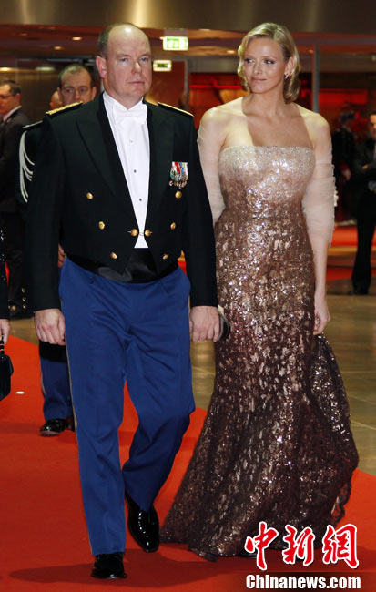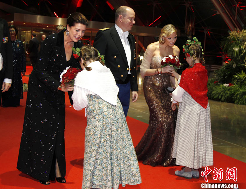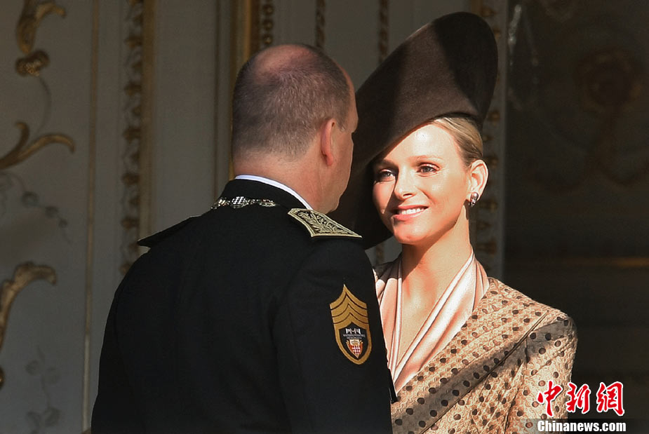 19日,摩納哥國家元首阿爾貝二世親王的準(zhǔn)王妃查倫·維特施托克(圖左)驚艷亮相摩納哥國慶慶典。她與王室成員一同出現(xiàn)在王宮觀禮臺,接受民眾和游客的歡呼與祝福,當(dāng)晚她又以一身閃亮的白色禮服再次與王室成員共同亮相。