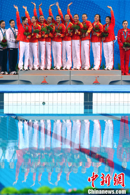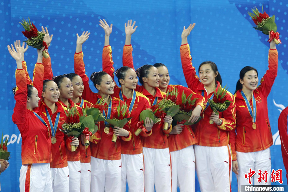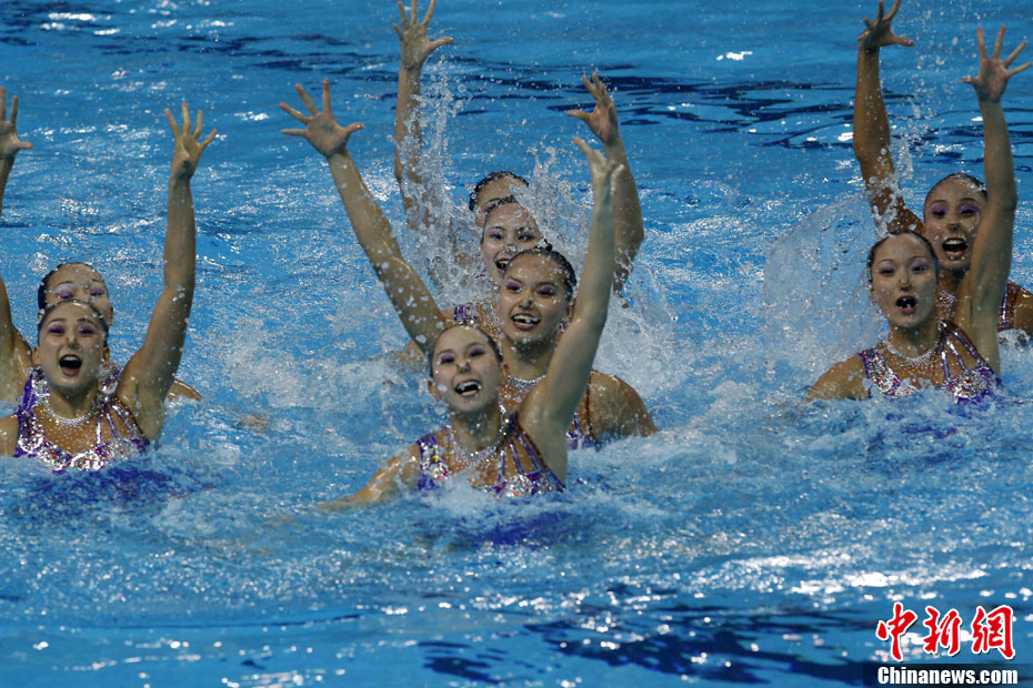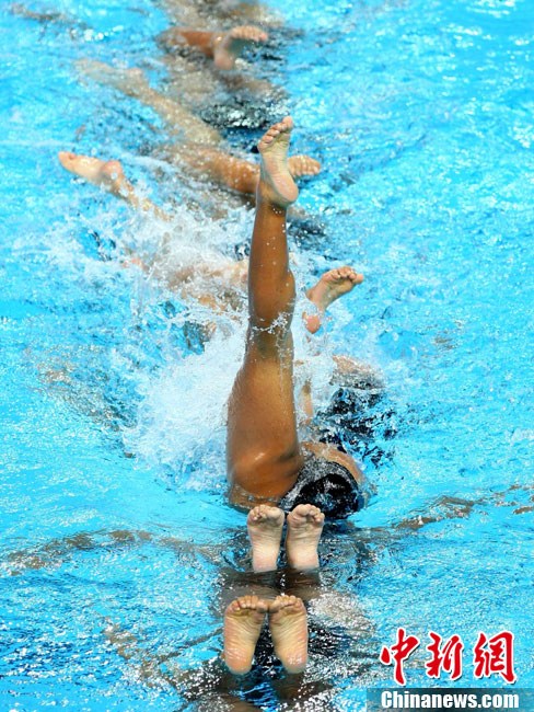 11月20日,廣州亞運(yùn)會(huì)花樣游泳集體技術(shù)自選動(dòng)作比賽舉行,五支參賽隊(duì)伍悉數(shù)亮相。圖為泰國(guó)隊(duì)在比賽中。中新社記者 富田 攝