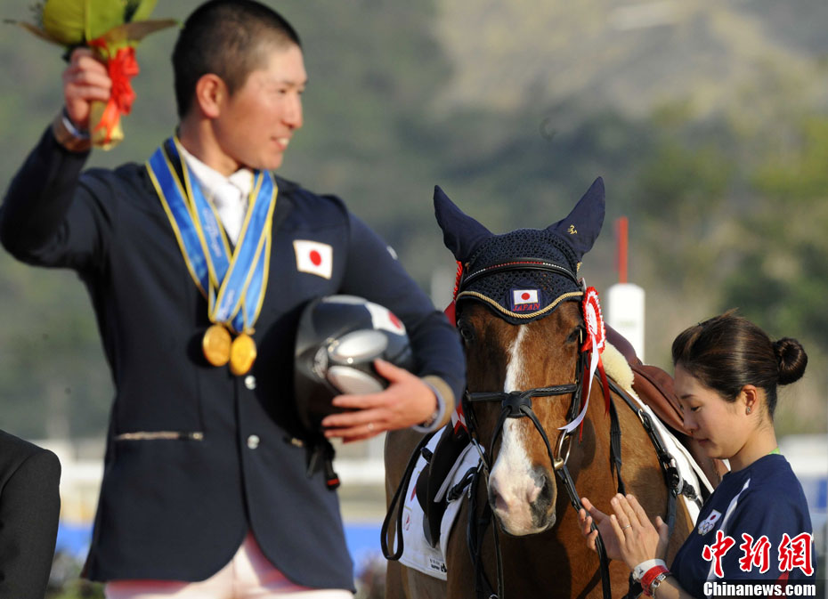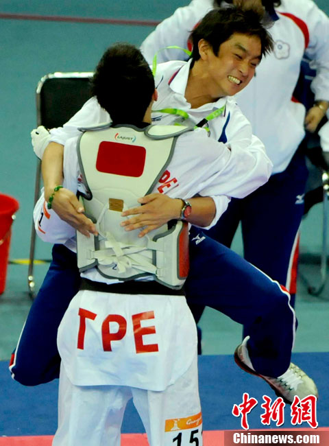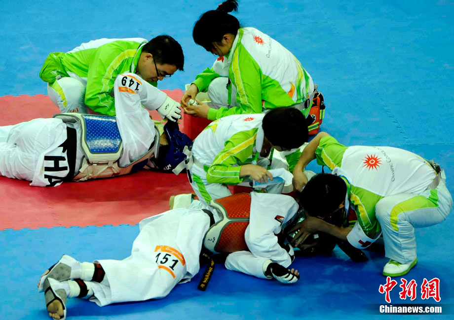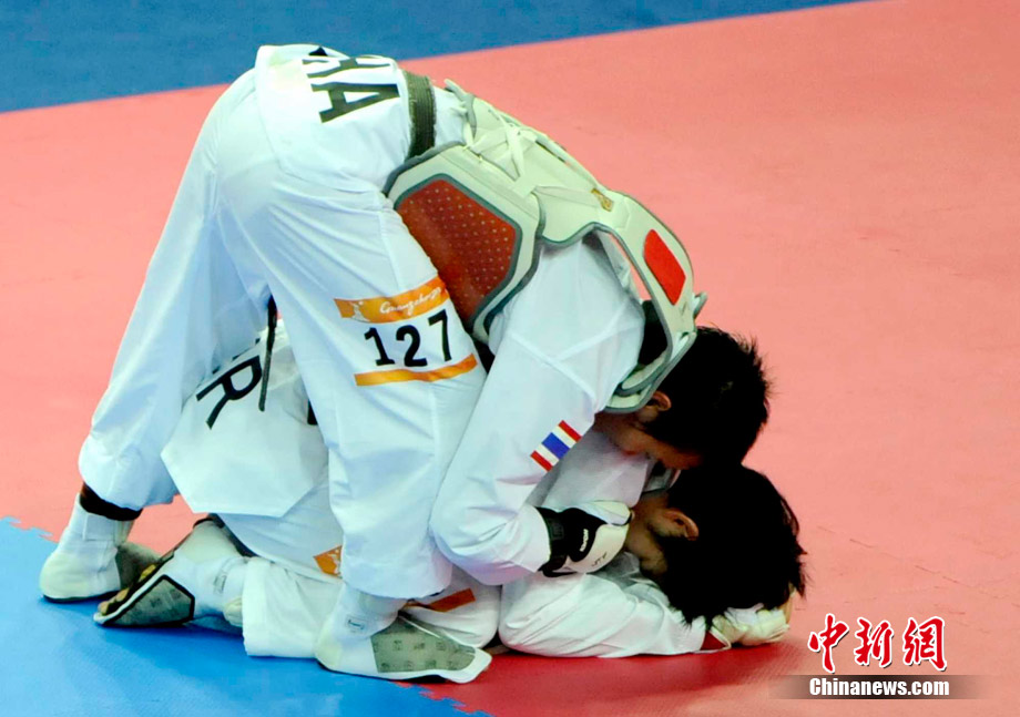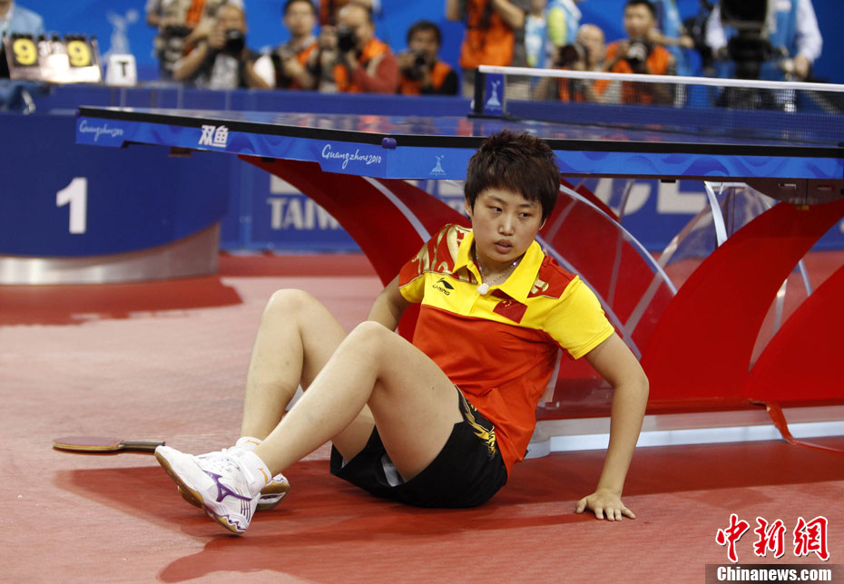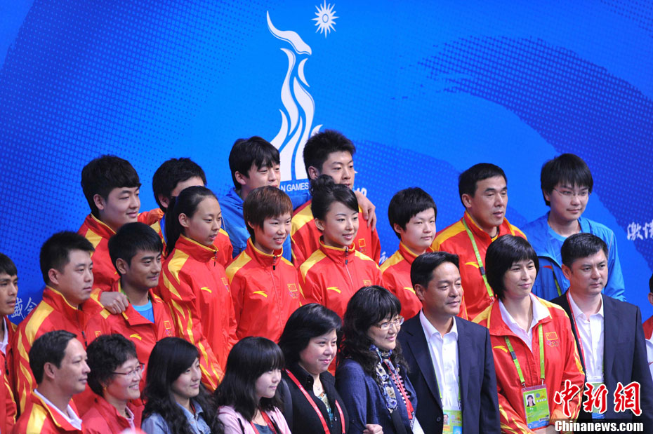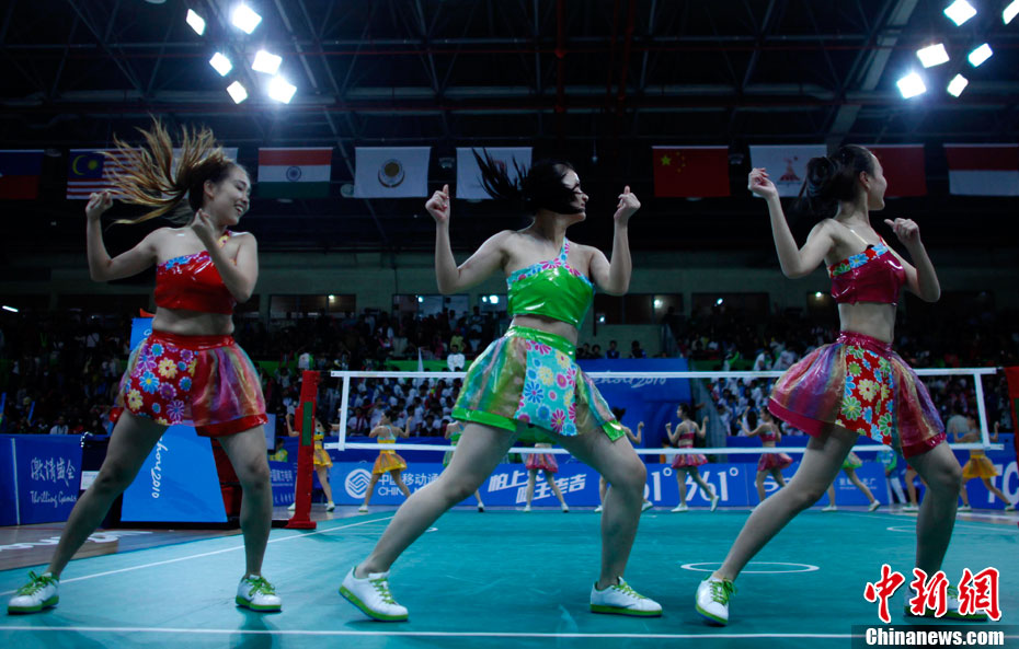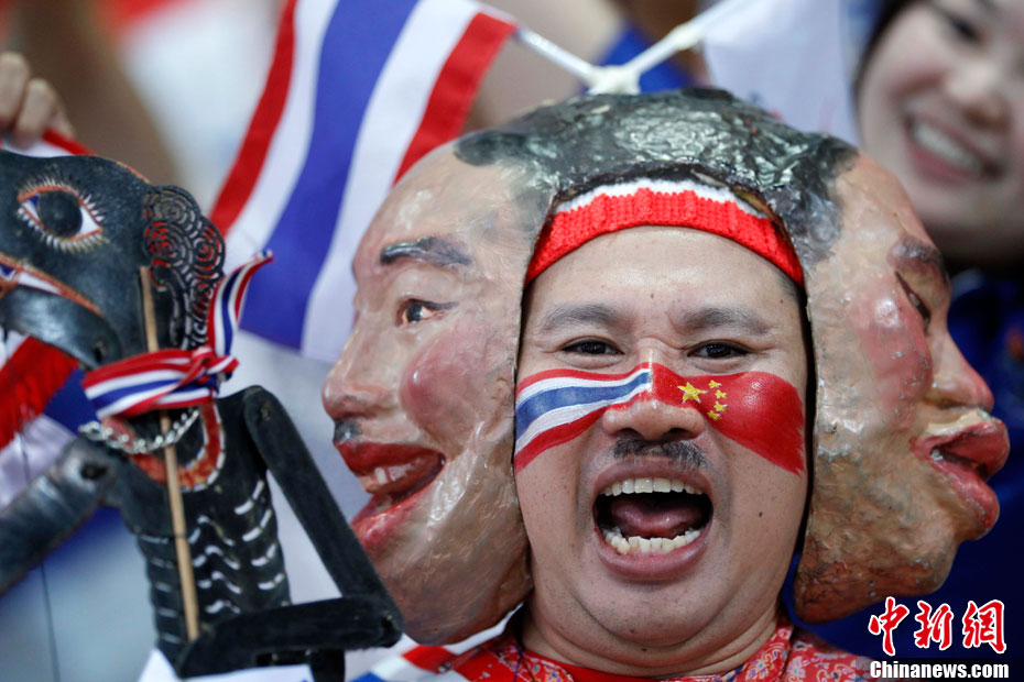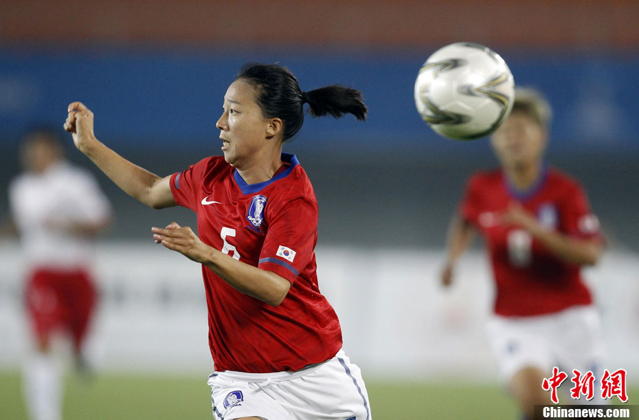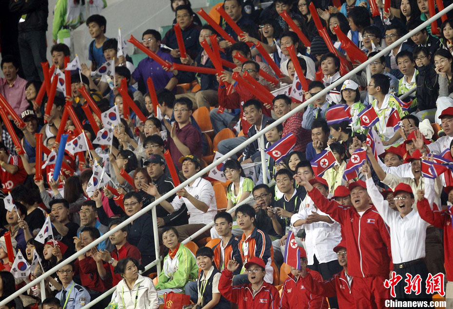 11月20日,廣州亞運會女足半決賽朝鮮對韓國,兩國球迷相鄰而坐。中新社記者 杜洋 攝
