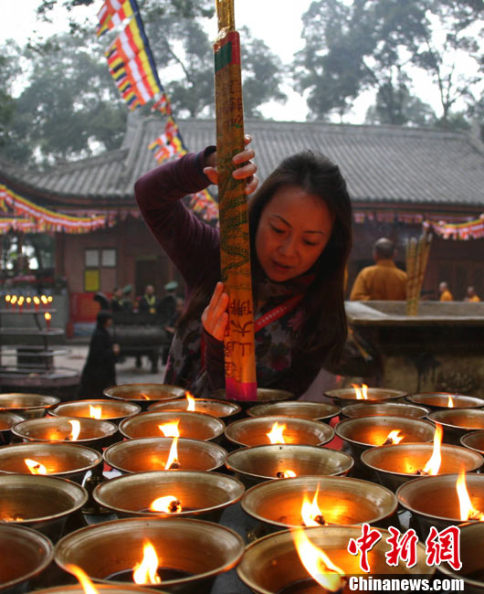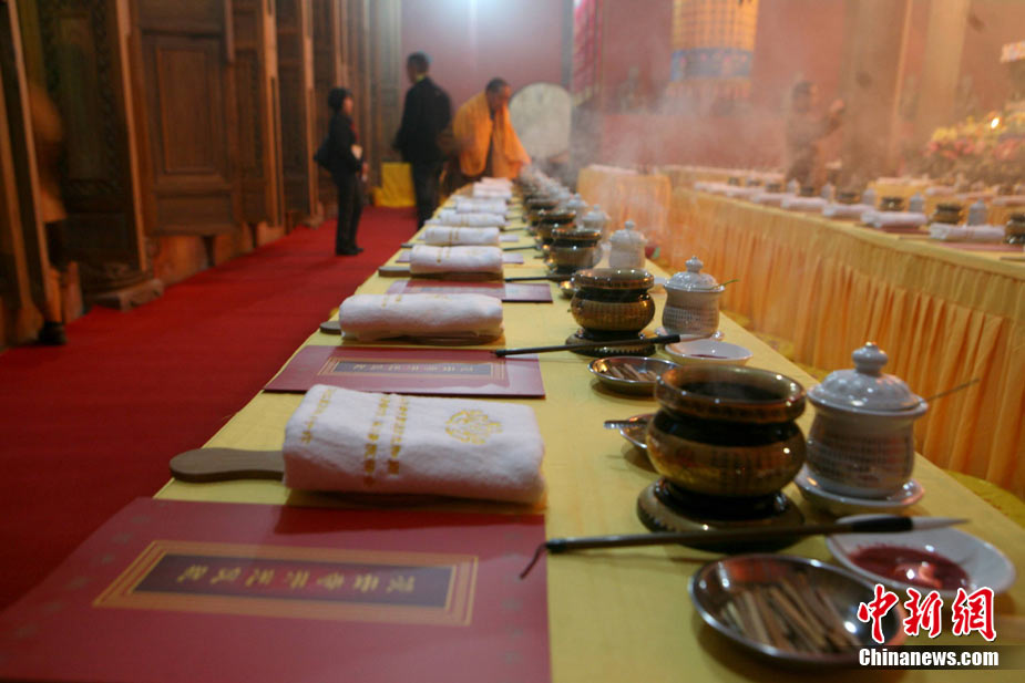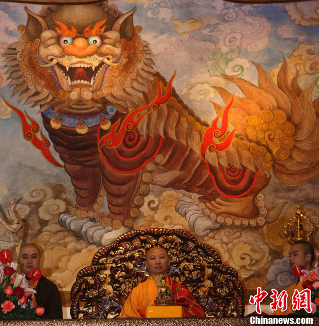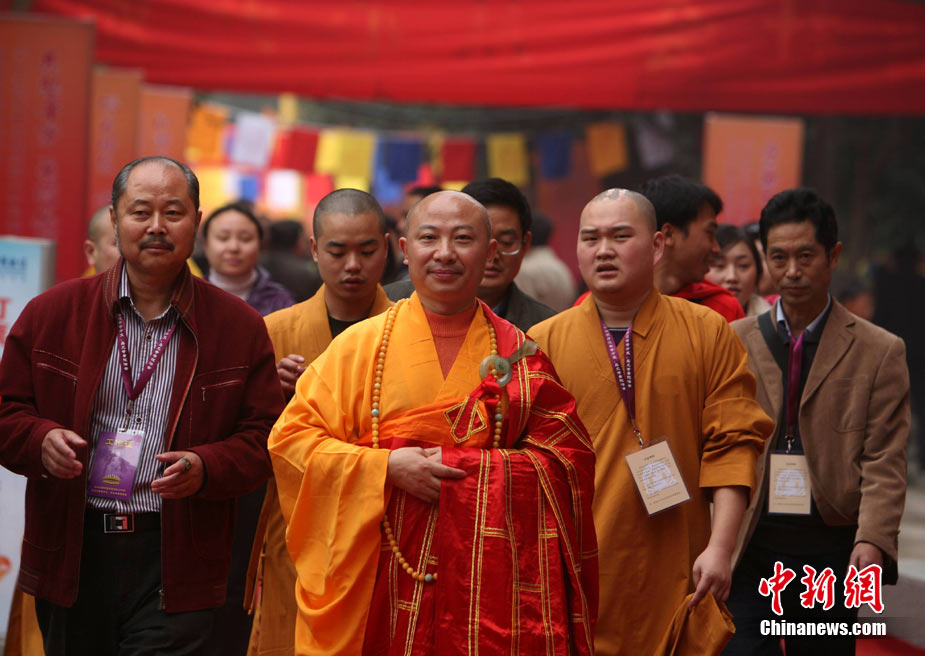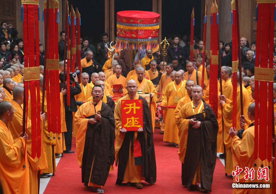 11月21日,“樂山凌云寺重光暨照觀法師榮膺凌云寺方丈、烏尤寺晉院升座法會”在四川樂山凌云寺、烏尤寺舉行。這標(biāo)志著有著1400年的千年名寺凌云寺經(jīng)歷“5·12” 汶川大地震的劫難后再現(xiàn)昔日光彩。圖為樂山凌云寺重光法會現(xiàn)場。中新社發(fā) 劉忠俊 攝