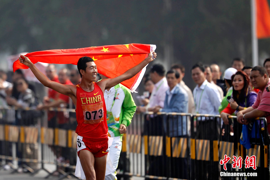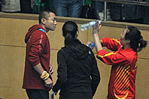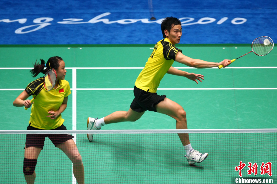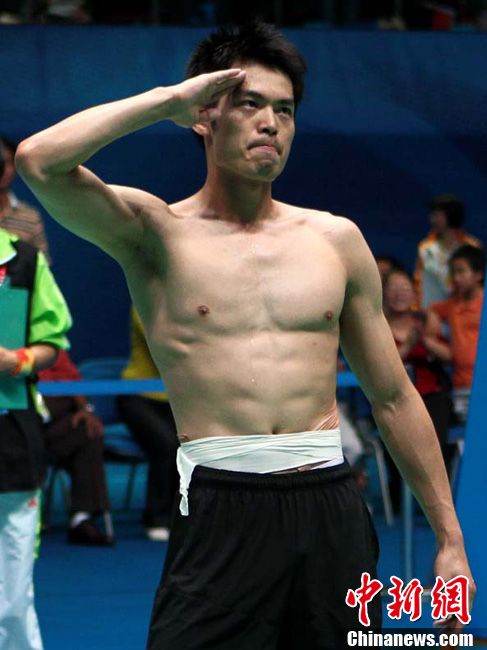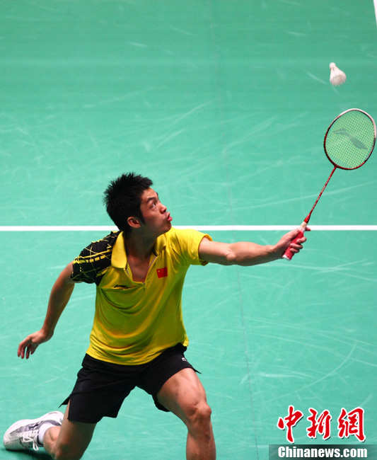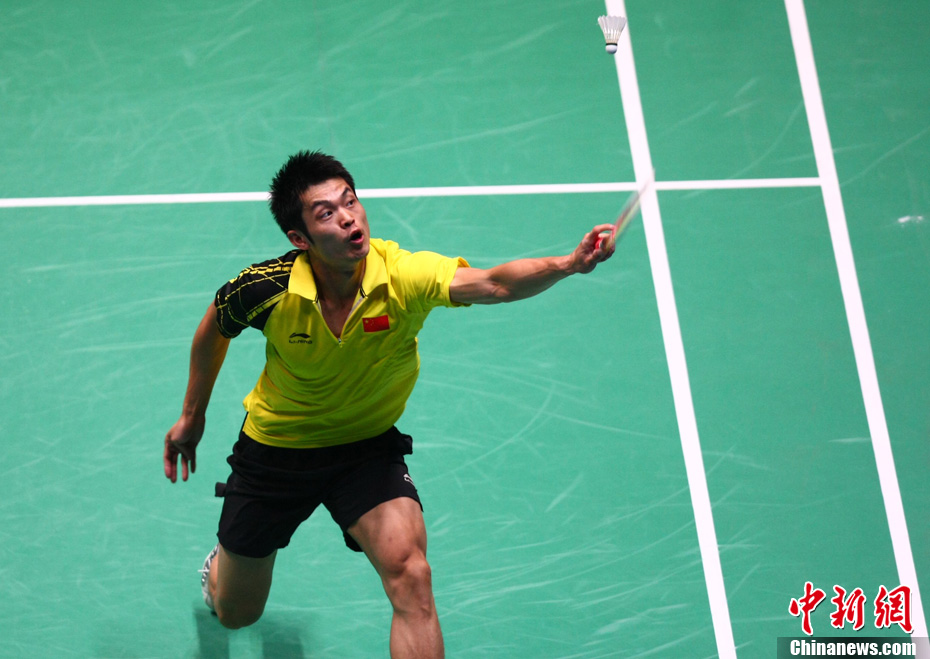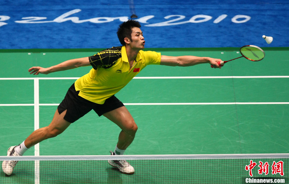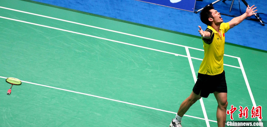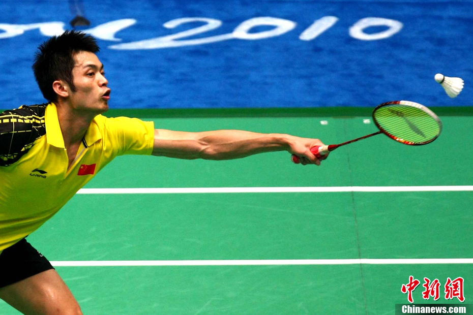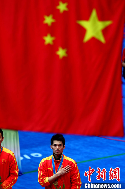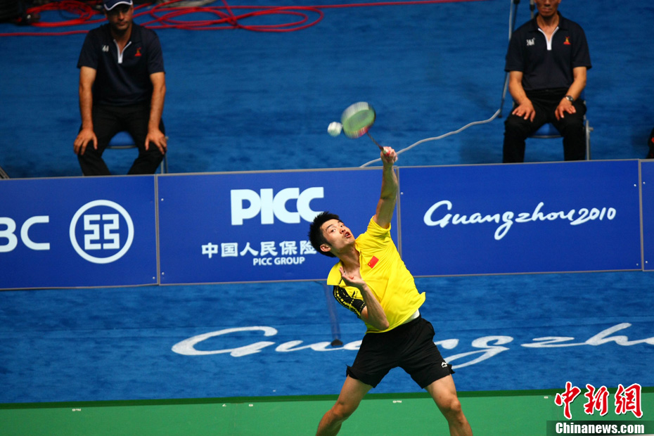 11月21日晚,2010年廣州亞運(yùn)會(huì)天河體育館羽毛球賽場(chǎng)舉行男子單打決賽,中國(guó)隊(duì)的林丹對(duì)陣馬來(lái)西亞的李宗偉。最終,林丹2-1戰(zhàn)勝李宗偉奪冠。中新社記者 富田 攝