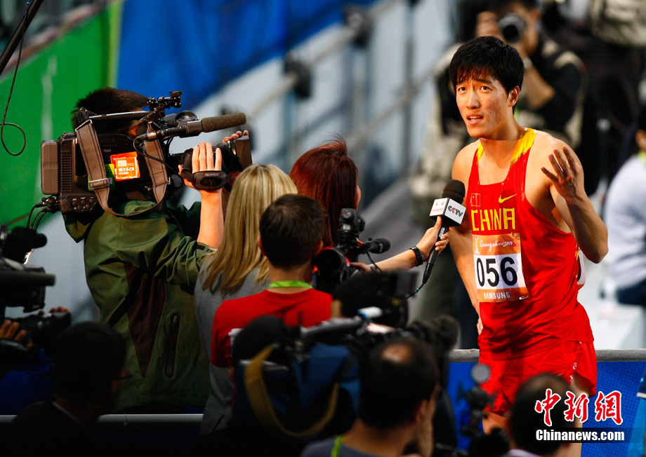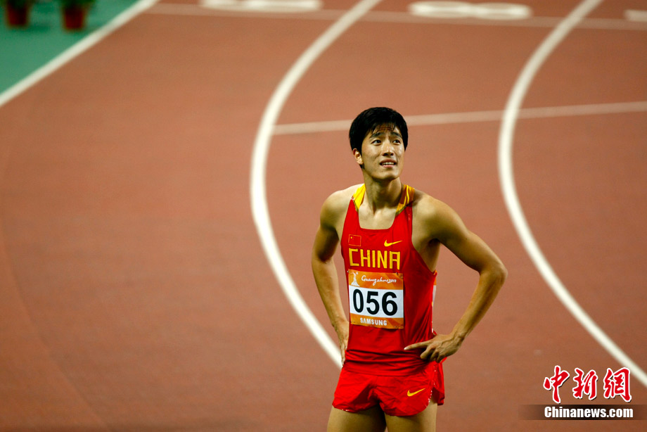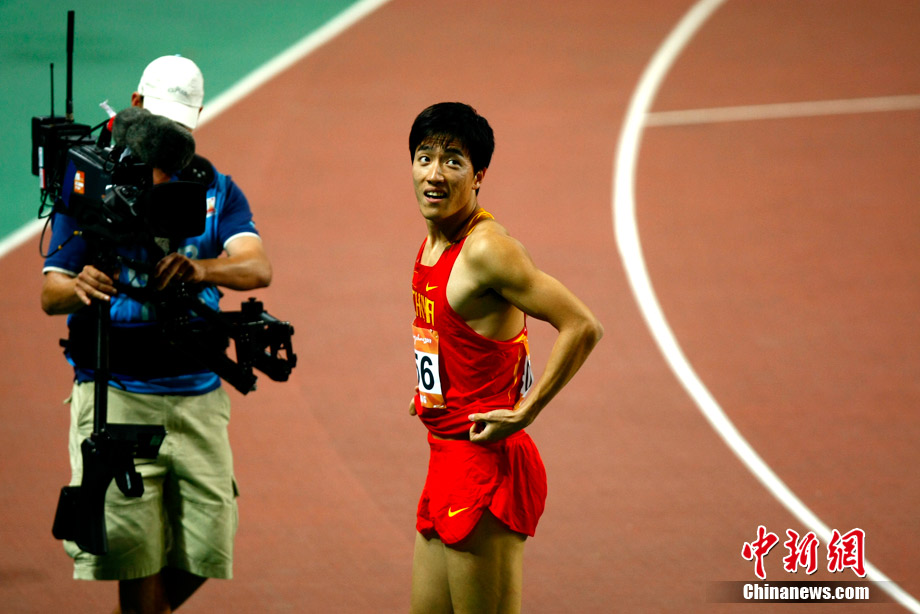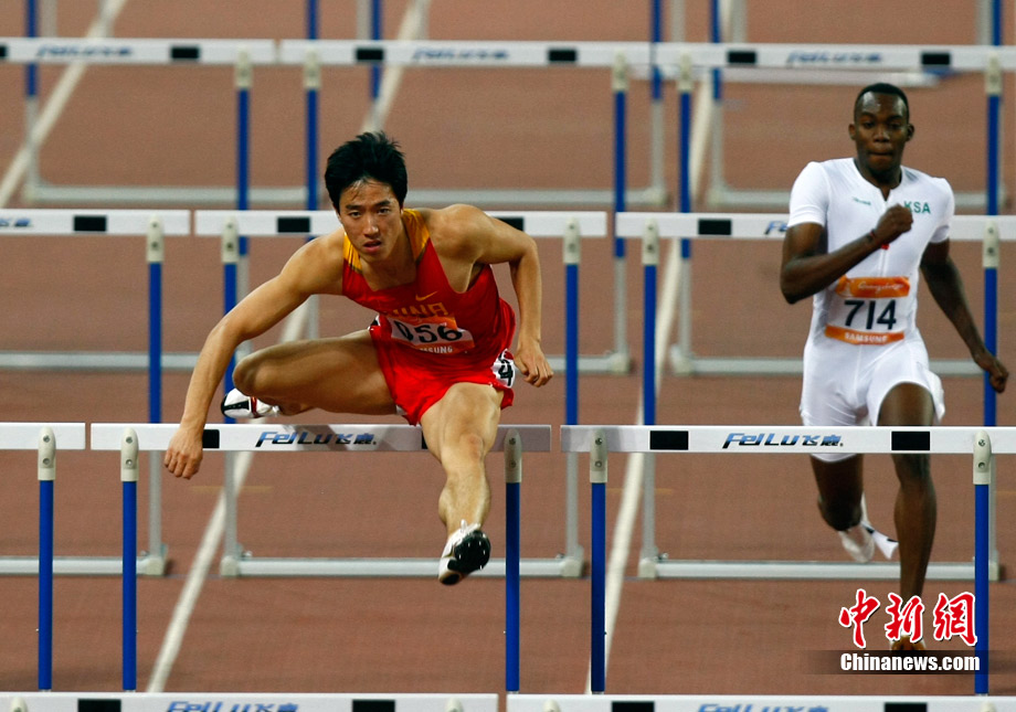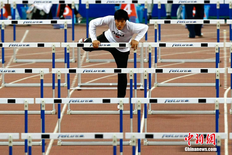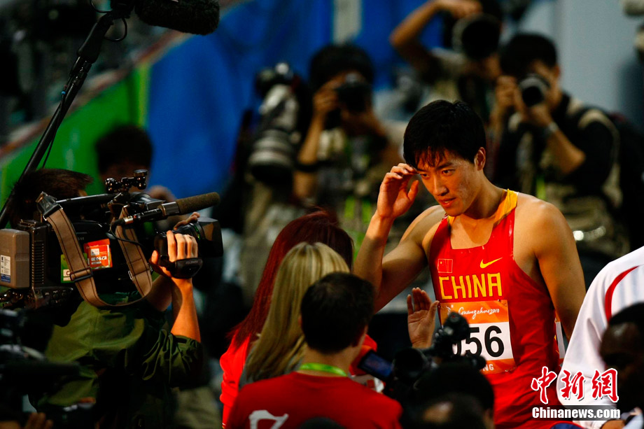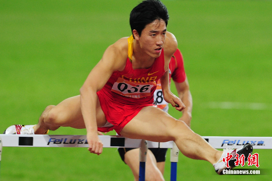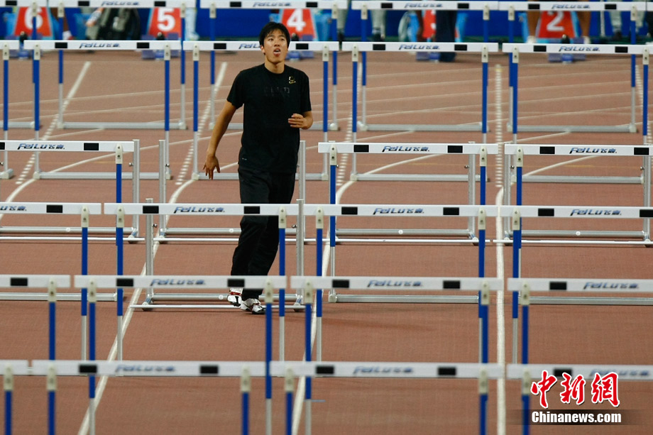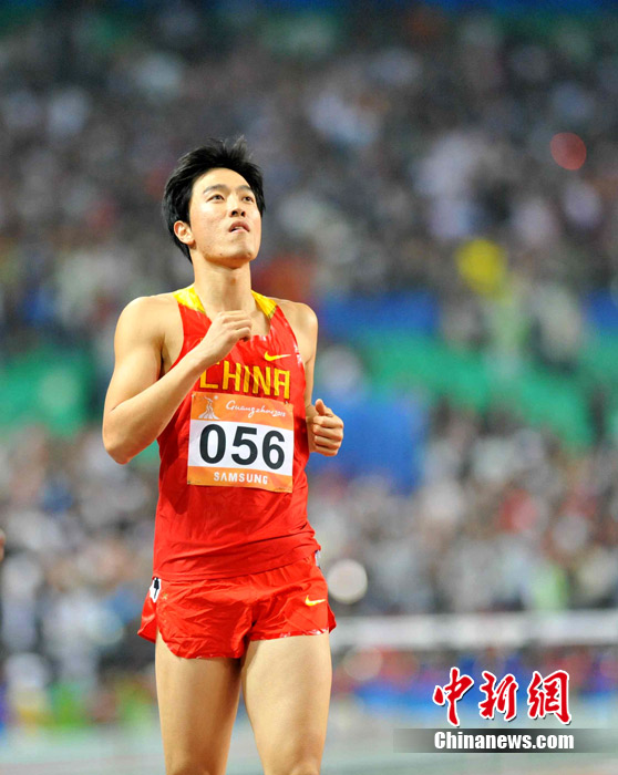 11月22日,廣州亞運(yùn)會(huì)田徑賽場(chǎng),男子110米欄的預(yù)賽,中國(guó)著名運(yùn)動(dòng)員劉翔登場(chǎng)亮相。圖為劉翔在進(jìn)行賽前熱身。中新社記者 富田 攝