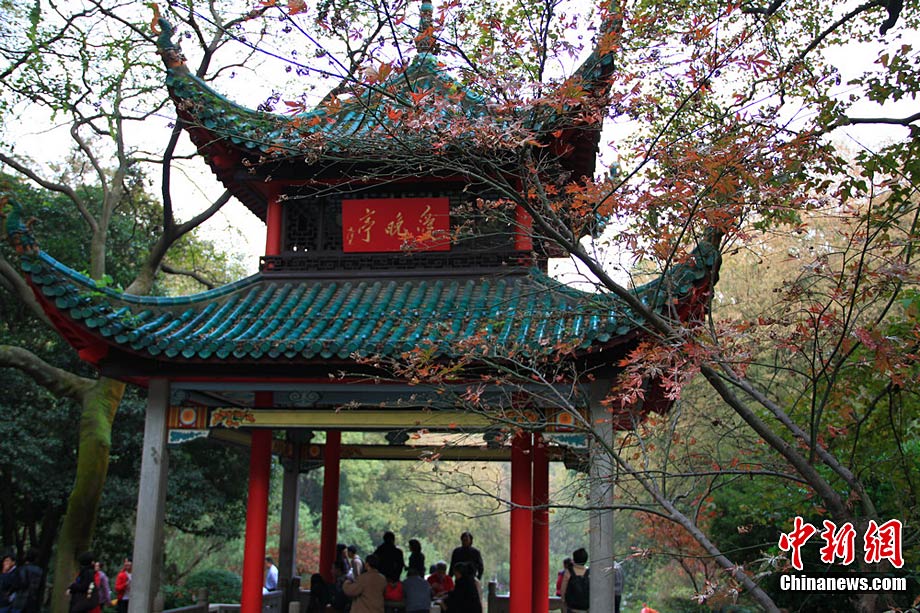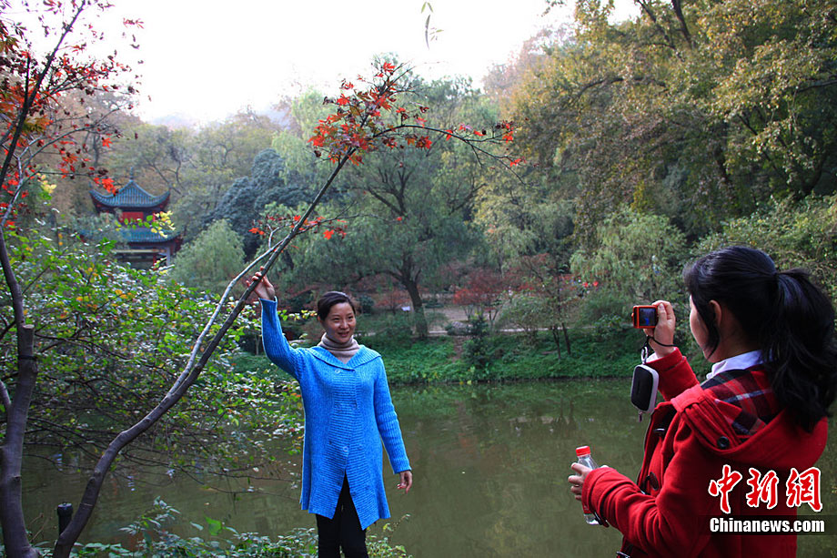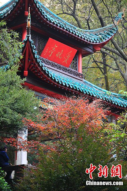 由于長(zhǎng)沙近期氣溫偏高,致使今年岳麓山上的楓葉紅得“姍姍來(lái)遲”,但仍有大批游客慕名前來(lái)觀賞,并在最佳觀賞點(diǎn)愛(ài)晚亭前留影。據(jù)了解,12月2日—25日,岳麓山將舉辦第六屆紅楓文化節(jié),在愛(ài)晚亭舉辦紅楓攝影比賽、萬(wàn)人大相親、市民時(shí)裝表演和爺孫書(shū)畫(huà)展等活動(dòng)。愛(ài)好攝影、書(shū)畫(huà)和時(shí)裝表演的市民均可報(bào)名參加。劉柱 攝