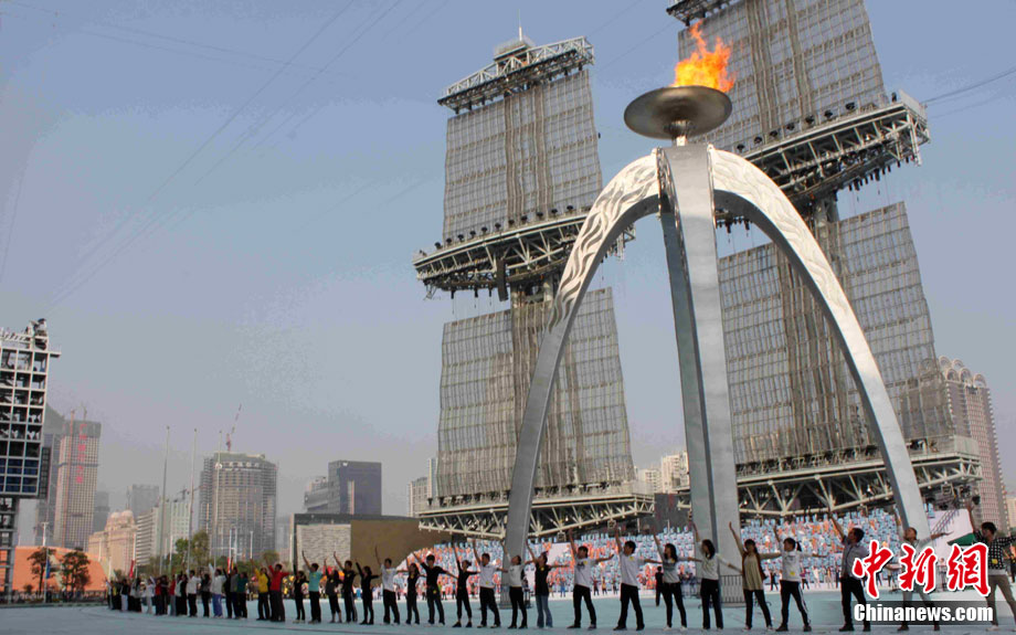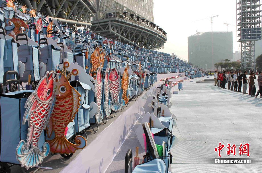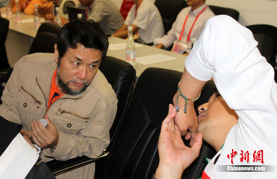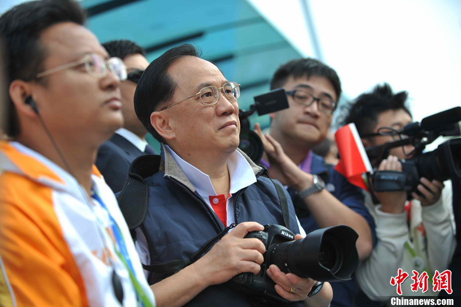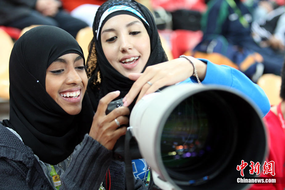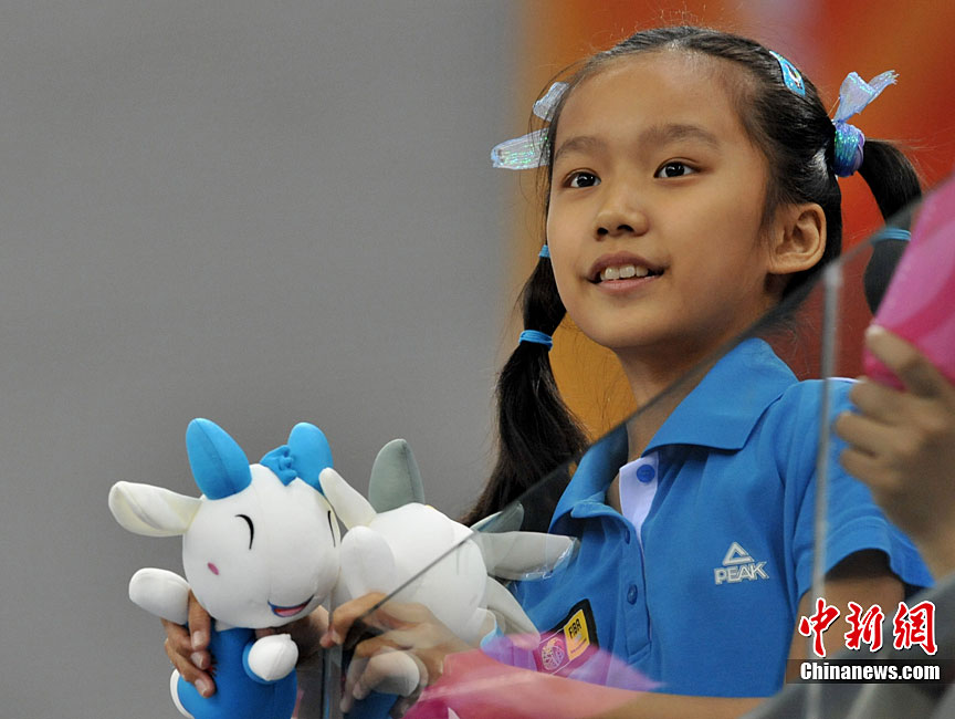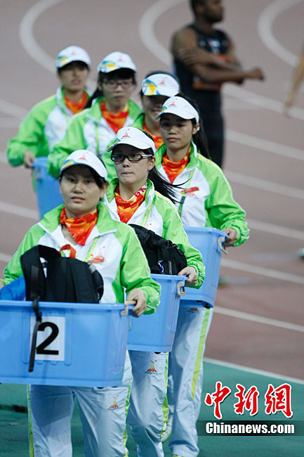 志愿者們正在將運動員們的物品收拾整齊暫時代管。在廣州亞運會比賽期間,志愿者們辛勞的身影已成為比賽場上一道亮麗的風景線。中新社記者 張茵 攝