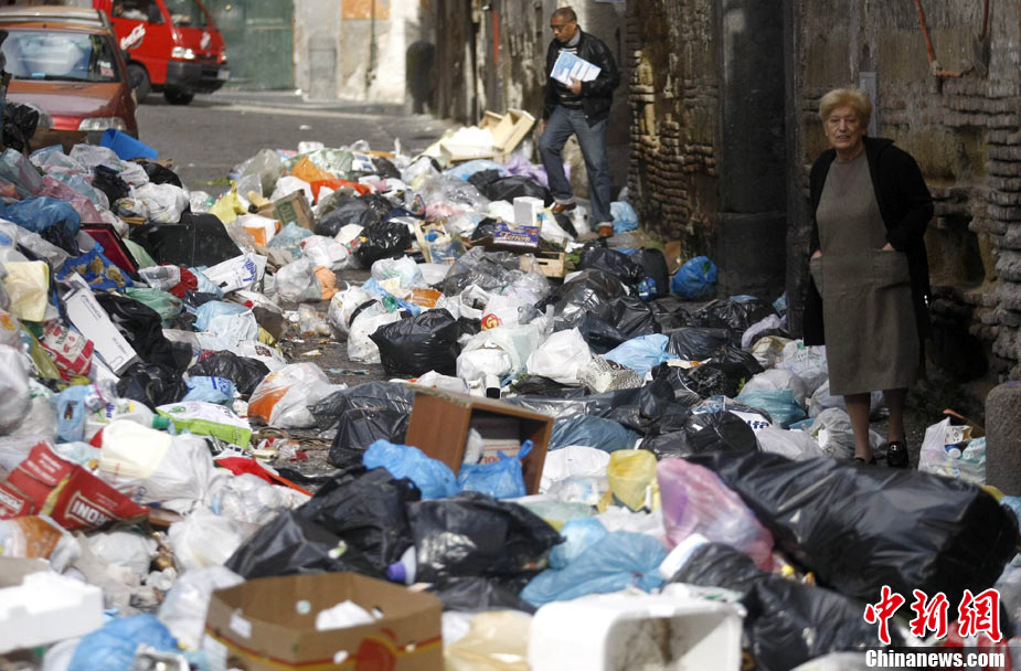 11月22日,意大利“垃圾危機(jī)”扔在持續(xù),那不勒斯街道垃圾成患。意大利政府打算在位于那不勒斯東南大約20公里的泰爾齊尼奧鎮(zhèn)新建一座垃圾處理場(chǎng),以解決那里的垃圾問(wèn)題。