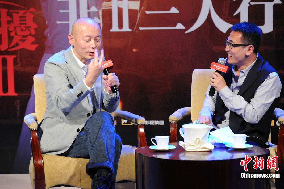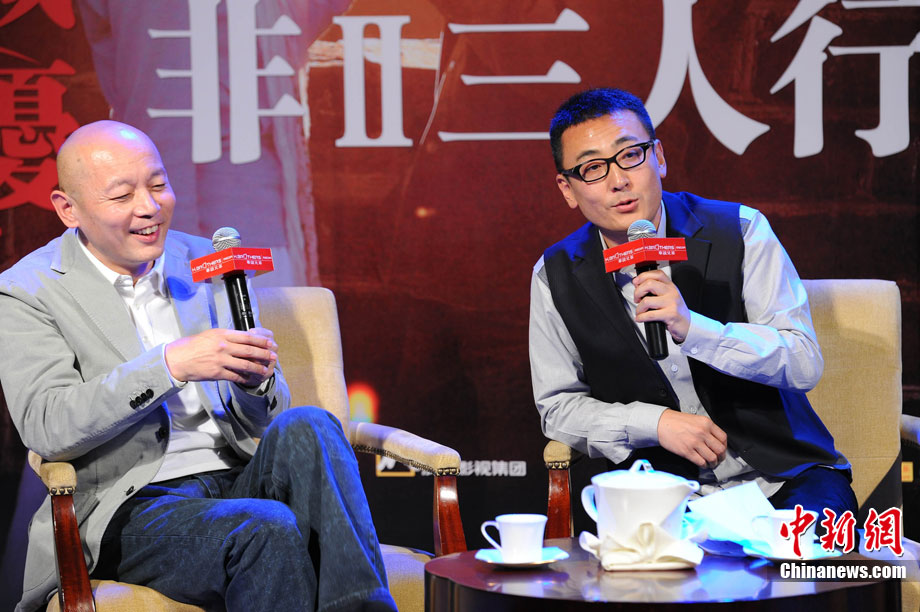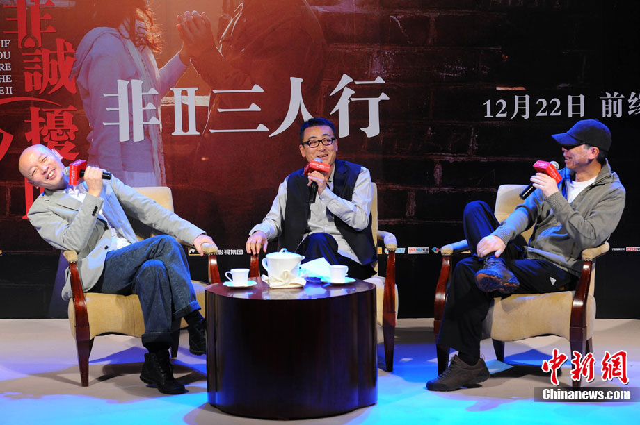 由華誼兄弟出品、馮小剛導(dǎo)演、王朔與馮小剛聯(lián)合編劇的《非誠勿擾2》將于12月22日賀歲上映。11月24日,《非誠勿擾2》舉行了“《非2》三人行”發(fā)布會,正式發(fā)布《非誠勿擾2》升級版幕后花絮,馮小剛、葛優(yōu)、竇文濤組成三人行搭檔。在竇文濤的幽默調(diào)侃下,葛優(yōu)馮小剛熱聊新戲,笑聲不斷。在當(dāng)場公布的升級篇幕后花絮中,秦奮和梁笑笑的親密戲也出露端倪,葛優(yōu)舒淇在美景中多次深情依偎,一場兩人在床上的鏡頭更令人期待。馮小剛承認(rèn),“是多了一些親密戲,但都是幽默的處理。”葛優(yōu)也謙虛表示,自己演親密戲其實(shí)并不拿手。中新社記者 李學(xué)仕 攝