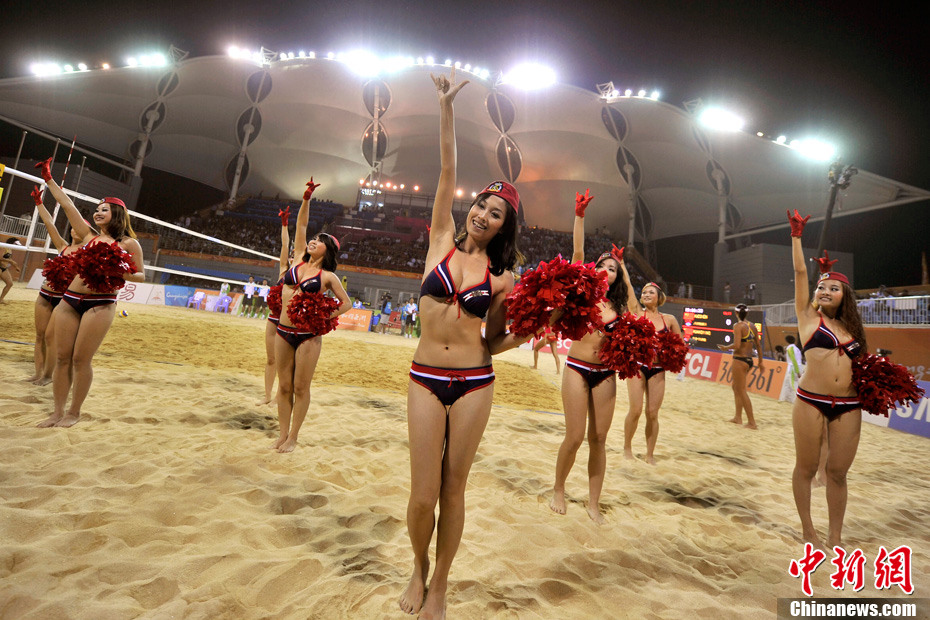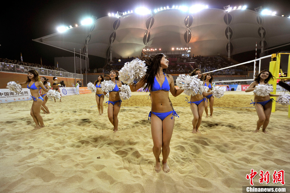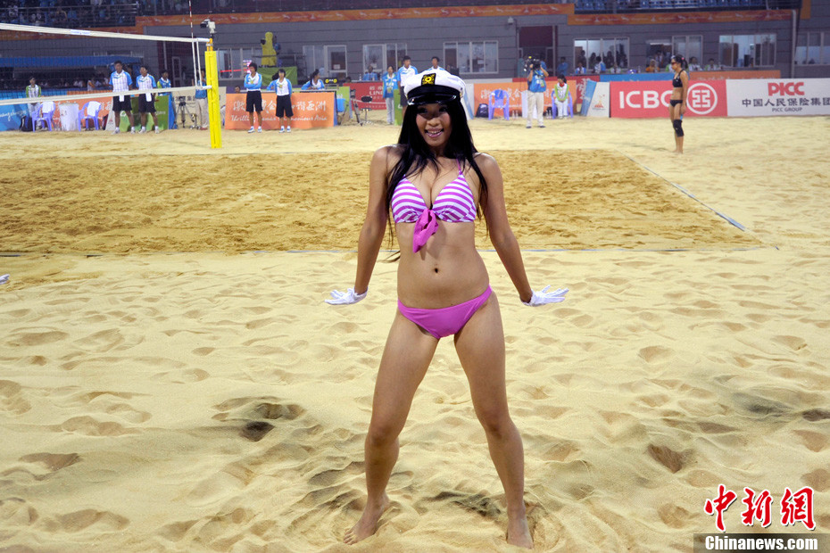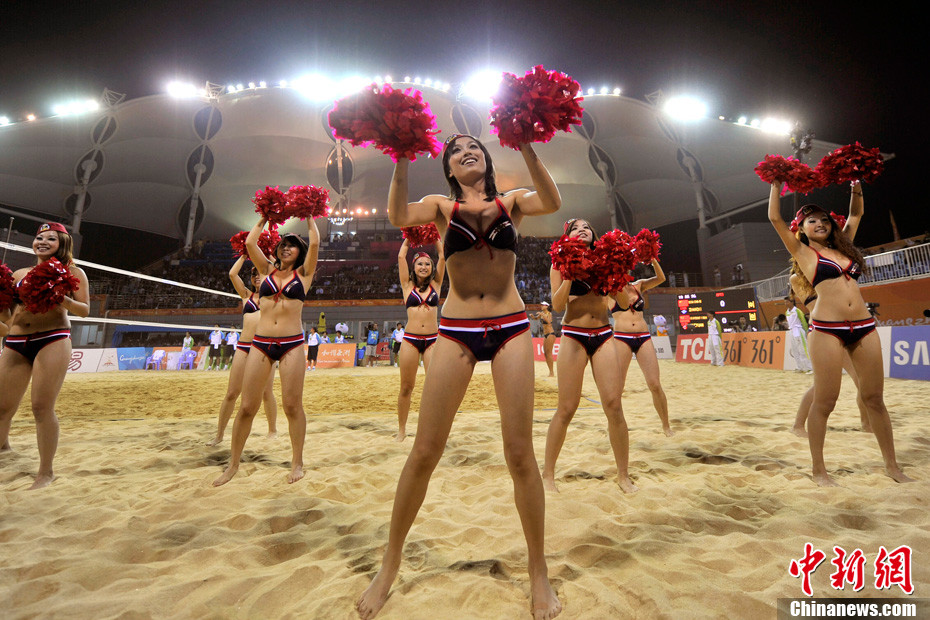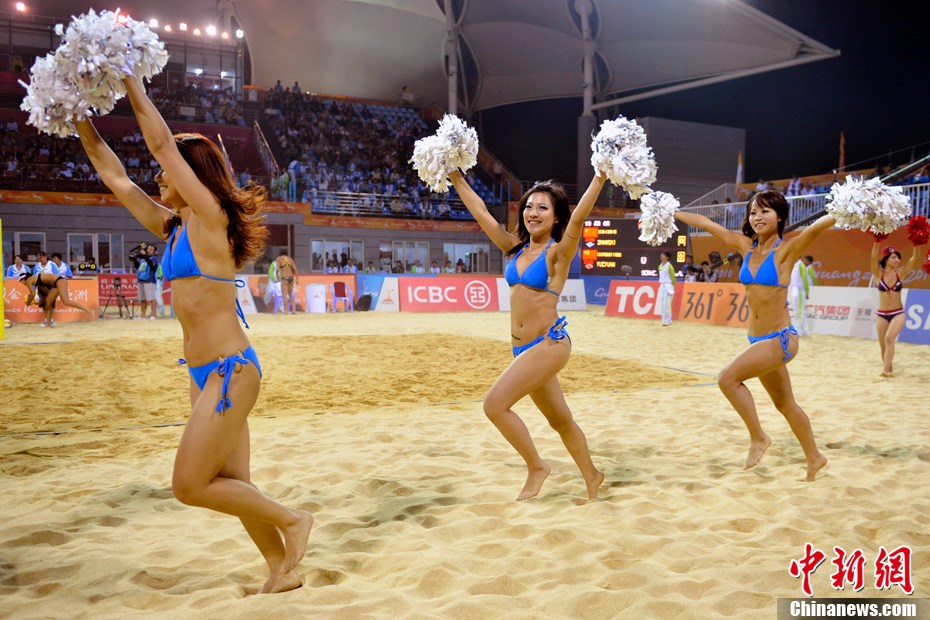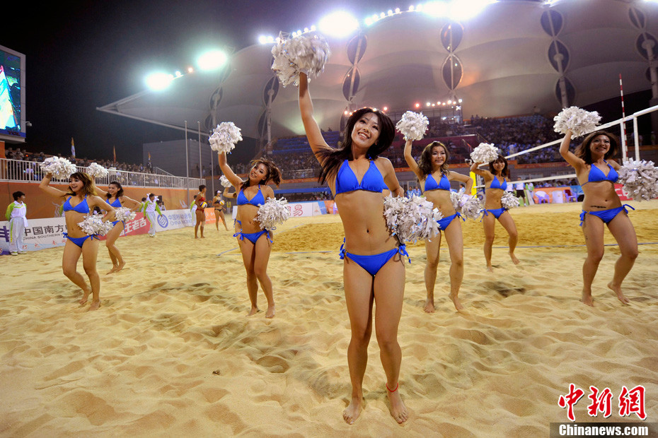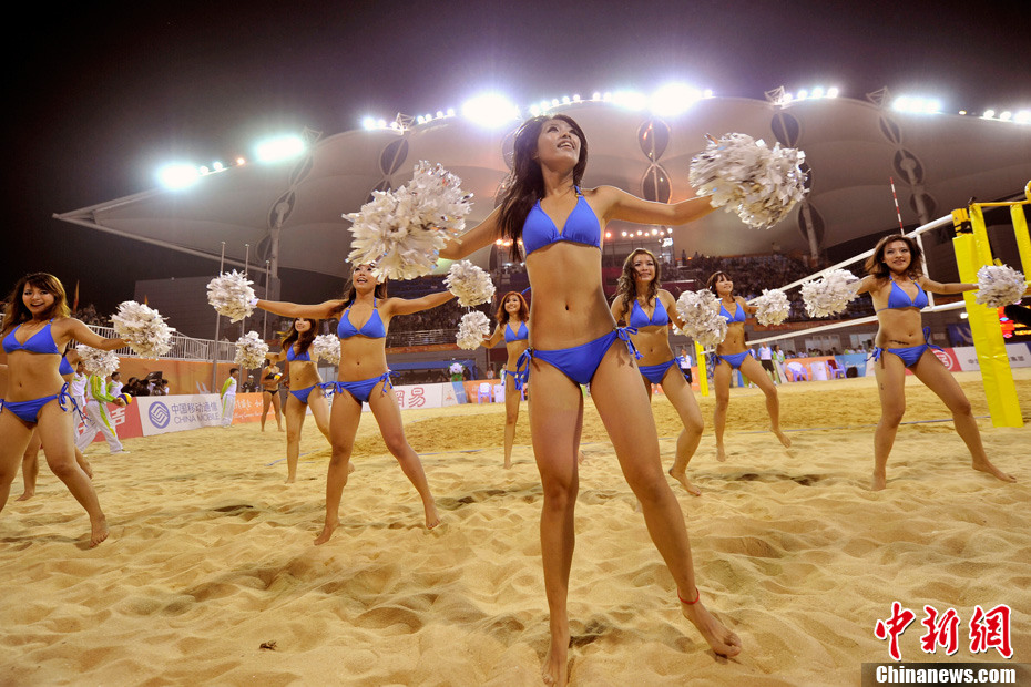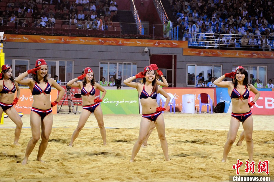 11月24日晚,廣州亞運(yùn)會(huì)沙排比賽完美落幕。青春時(shí)尚的沙排寶貝給人留下深刻印象,她們用熱情點(diǎn)燃現(xiàn)場(chǎng)觀眾的激情,水手裝、海軍帽、藍(lán)色海洋比基尼加上性感熱舞謀殺菲林無數(shù),令人血脈噴張!讓我們?cè)僖淮沃販亍吧撑艑氊悺钡母鞣N性感造型。中新網(wǎng)記者 金碩 攝