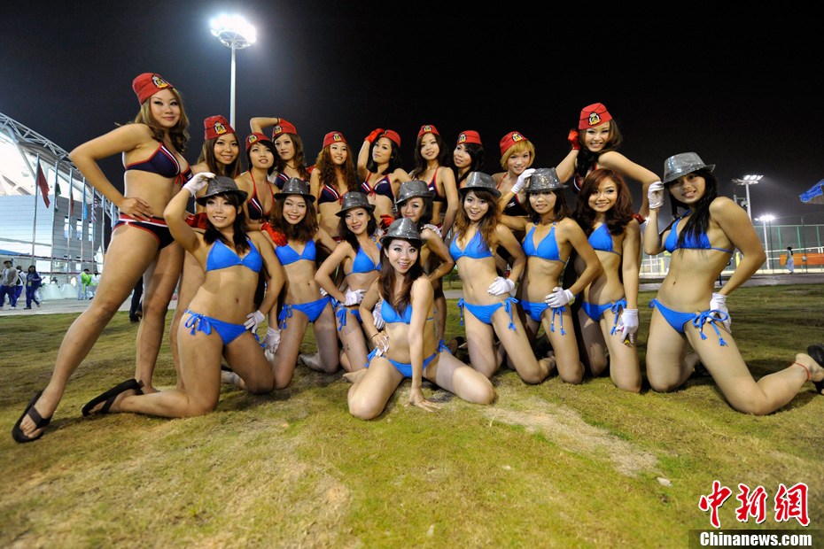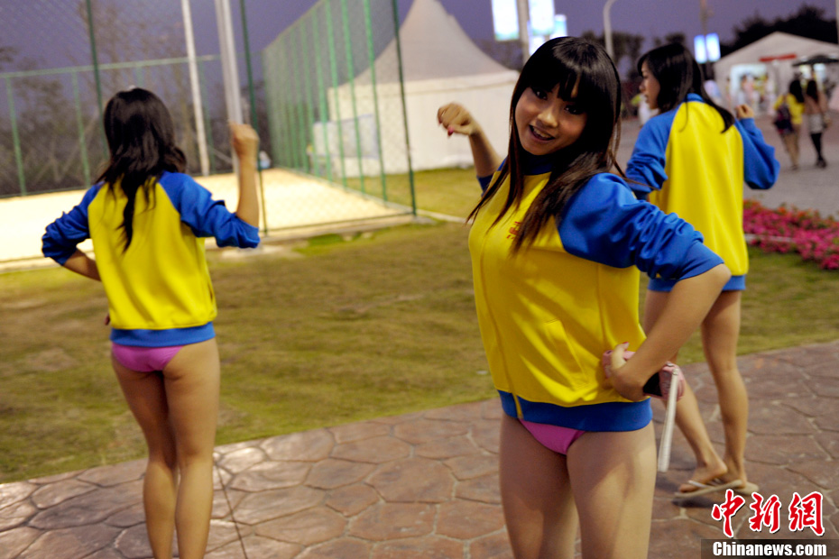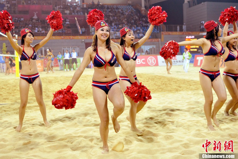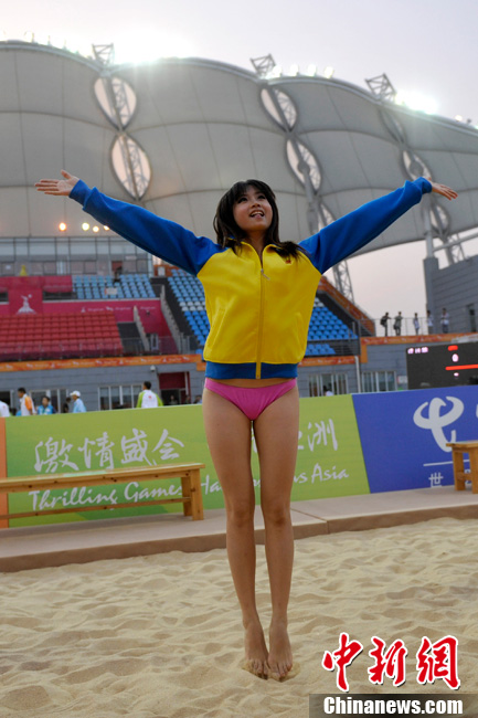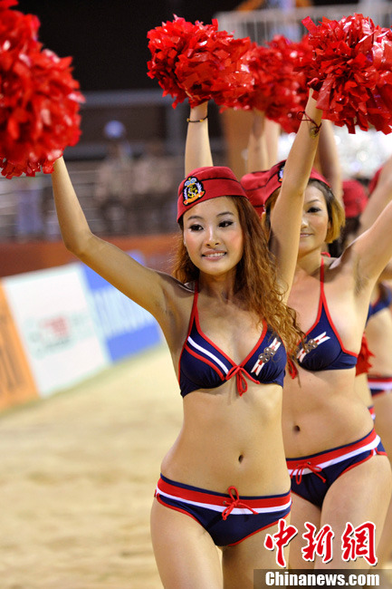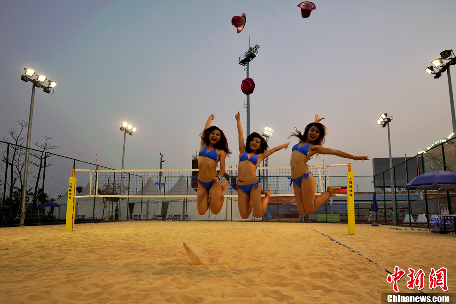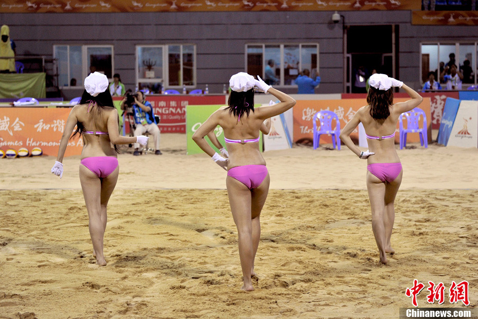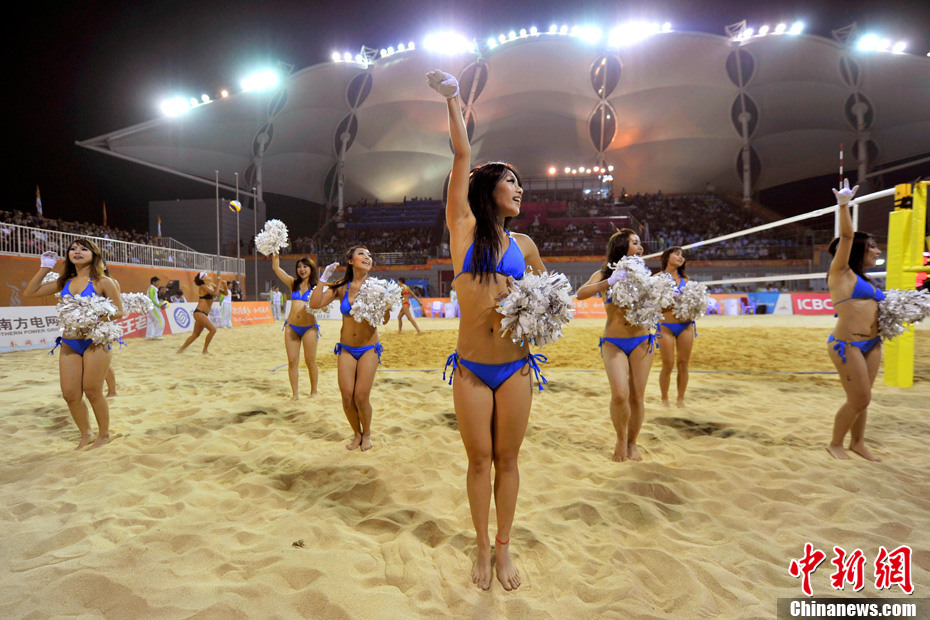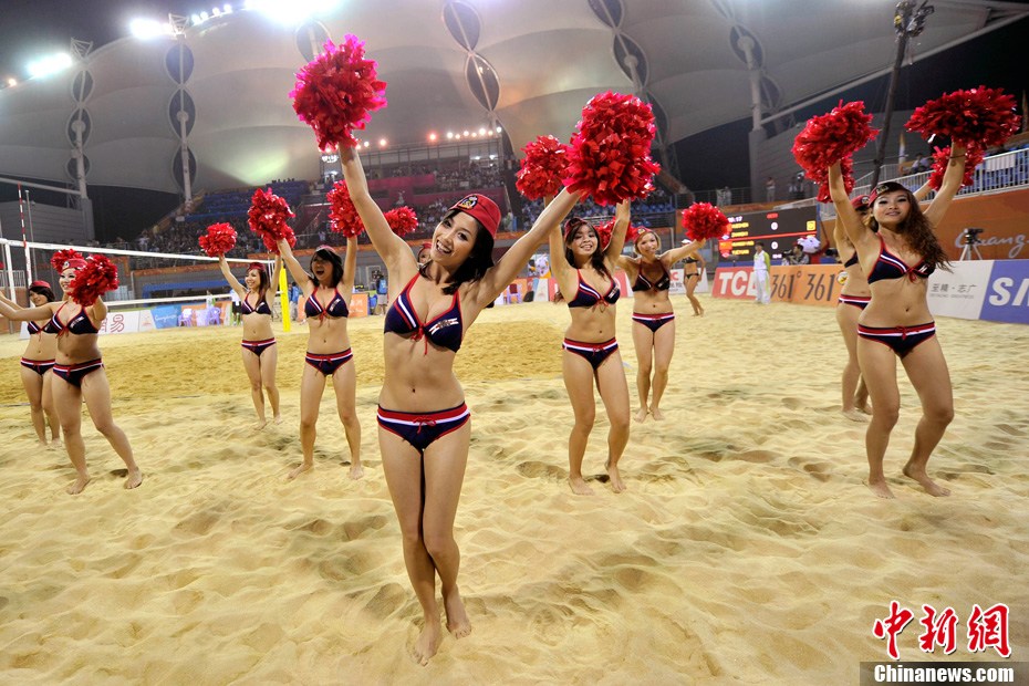 11月24日晚,廣州亞運(yùn)會(huì)沙排比賽完美落幕。青春時(shí)尚的沙排寶貝給人留下深刻印象,她們用熱情點(diǎn)燃現(xiàn)場(chǎng)觀眾的激情,水手裝、海軍帽、藍(lán)色海洋比基尼加上性感熱舞謀殺菲林無數(shù),令人血脈噴張!讓我們?cè)僖淮沃販亍吧撑艑氊悺钡母鞣N性感造型。中新網(wǎng)記者 金碩 攝