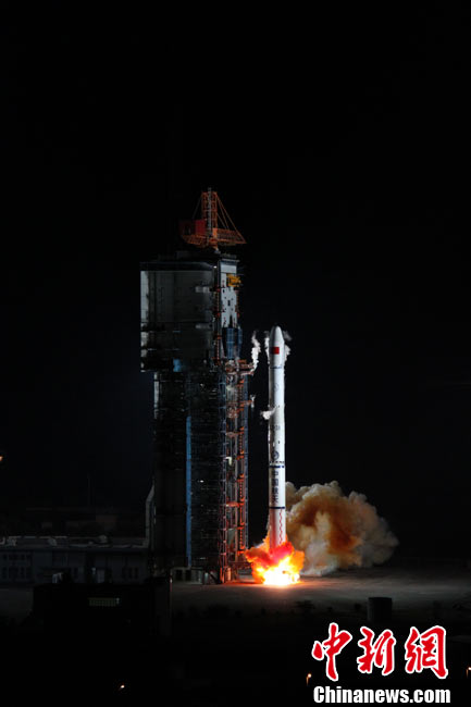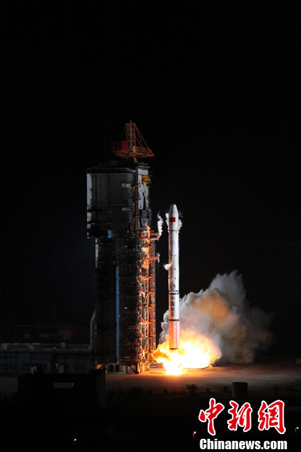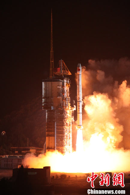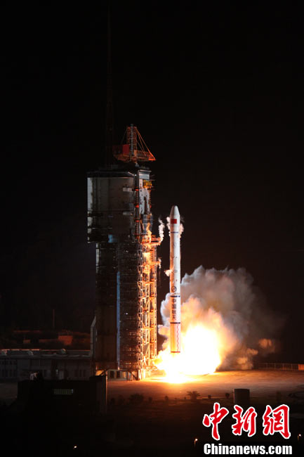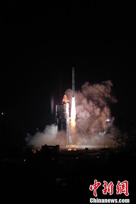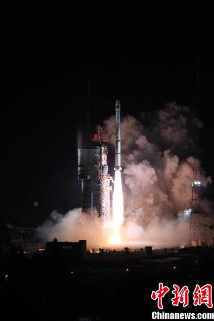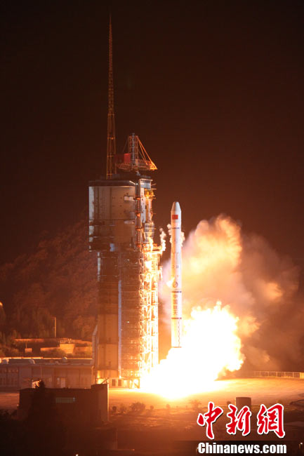 北京時(shí)間25日0時(shí)9分,中國(guó)在西昌衛(wèi)星發(fā)射中心用“長(zhǎng)征三號(hào)甲”運(yùn)載火箭,將“中星-20A”通信廣播衛(wèi)星成功送入太空預(yù)定軌道。中新網(wǎng)發(fā) 王玉磊 攝