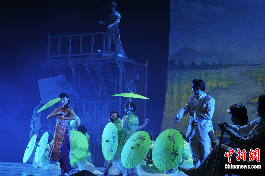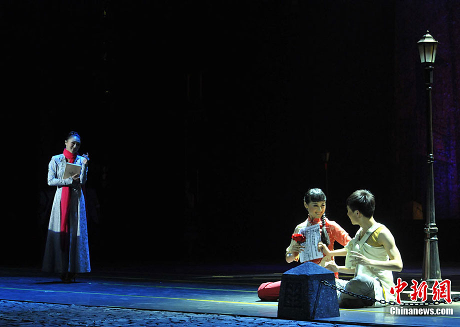 11月26日晚,由廣州亞運會開幕式導(dǎo)演陳維亞執(zhí)導(dǎo)、講述一代名伶周璇的原創(chuàng)海派舞劇《周璇》在蘭州金城大劇院精彩上演。周璇是中國早期電影著名女演員、民國時期著名歌唱家、一代歌后,她的名字可以說是國語流行曲史上一個金字招牌,號稱“金嗓子”。楊艷敏 攝