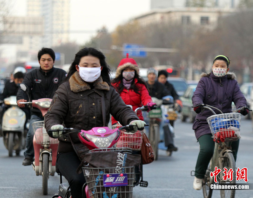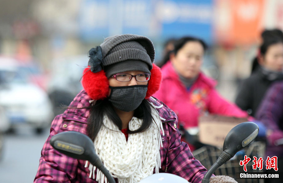 12月6日,河南鄭州,民眾全副“武裝”抵御寒潮襲擊。5日傍晚,中央氣象臺發(fā)布的天氣預(yù)報顯示,從當(dāng)日起,受強冷空氣影響,未來三天,中國中東部大部地區(qū)都將先后出現(xiàn)6~12℃降溫,其中,吉林東部、遼寧中東部、山東、江蘇等地的部分地區(qū)降溫幅度可達14~16℃。中新社記者 王中舉 攝
