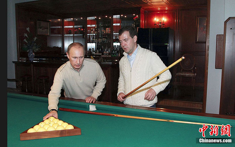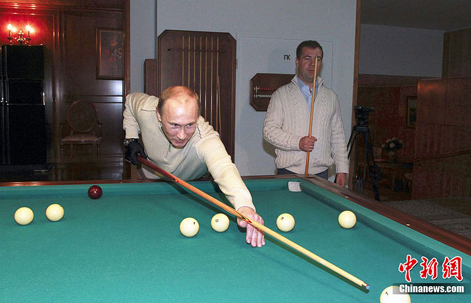 在瑞士蘇黎世贏得2018年世界杯主辦權(quán)的俄羅斯總理普京,當(dāng)天飛到俄羅斯黑海海濱城市索契,與正在當(dāng)?shù)貢娨獯罄偫碡惐R斯科尼的俄總統(tǒng)梅德韋杰夫會合。3日晚間,梅普組合興致勃勃地一起打臺球看電影。