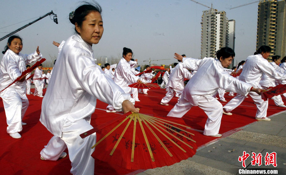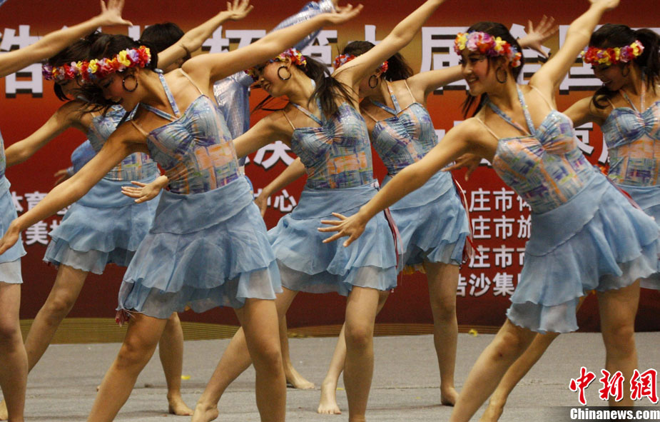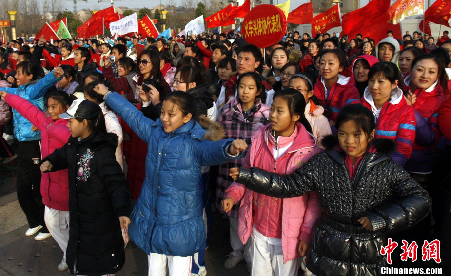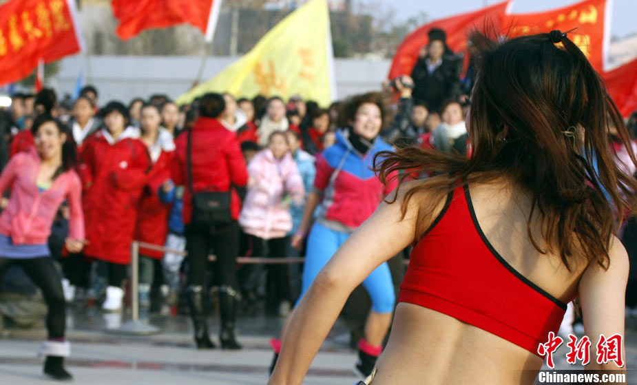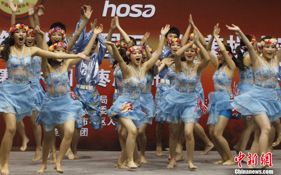 12月9日,由中國(guó)國(guó)家體育總局體操運(yùn)動(dòng)管理中心、中國(guó)健美操協(xié)會(huì)、浩沙國(guó)際健身管理有限公司以及山東省棗莊市市中區(qū)聯(lián)合主辦的2010年第9屆“浩沙杯”中國(guó)內(nèi)地萬人健美操大賽在山東棗莊拉開帷幕,來自中國(guó)內(nèi)地20個(gè)分賽區(qū)的1700余名選手匯聚一地,大賽包括少兒組、中學(xué)組、大專學(xué)院組、健身俱樂部組、中老年組、家庭組等共10個(gè)組別的賽事項(xiàng)目。圖為 “浩沙杯”中國(guó)內(nèi)地萬人健美操大賽在棗莊東湖廣場(chǎng)拉開帷幕。 中新社記者 錢興強(qiáng) 攝