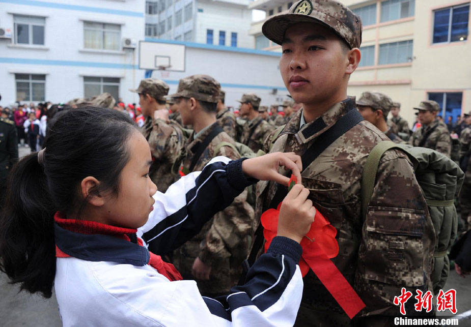 12月10日,北京市在西客站舉行隆重的歡送首批新兵儀式。來(lái)自東城、西城、朝陽(yáng)、海淀等14個(gè)區(qū)的500名新戰(zhàn)士身穿軍裝,胸帶紅花,即將奔赴四川、陜西、湖北、河北等地軍營(yíng)。北京市征召的新兵中,高校畢業(yè)生和在校生超過(guò)了三分之一。