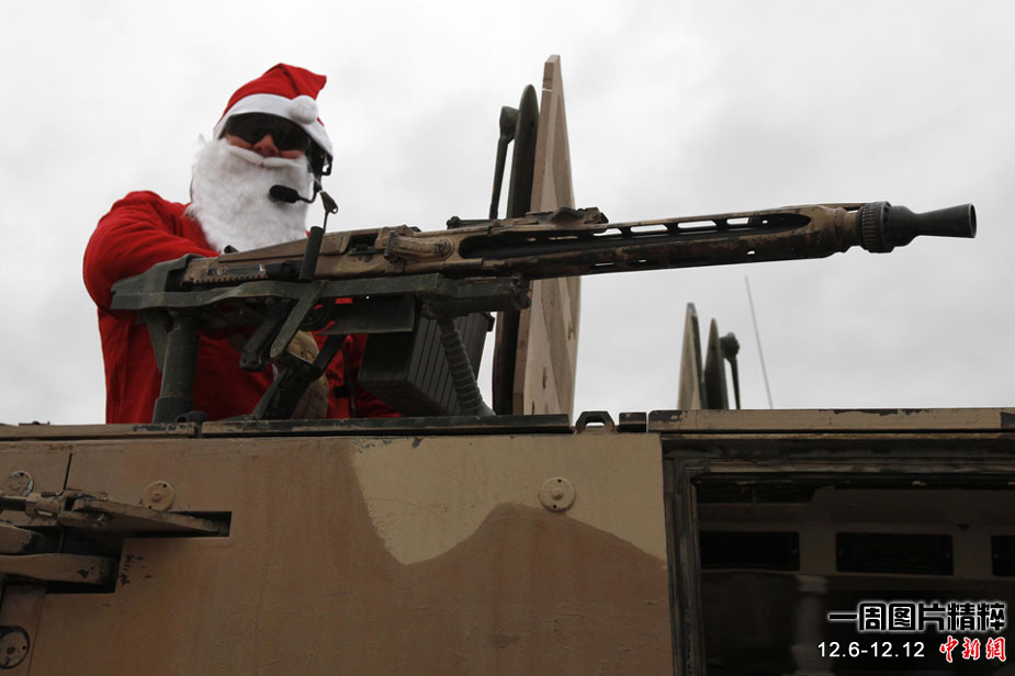 12月6日(周一),一名身著圣誕老人服裝的德國(guó)士兵乘坐在裝甲車(chē)上前往阿富汗昆都士執(zhí)行任務(wù)。