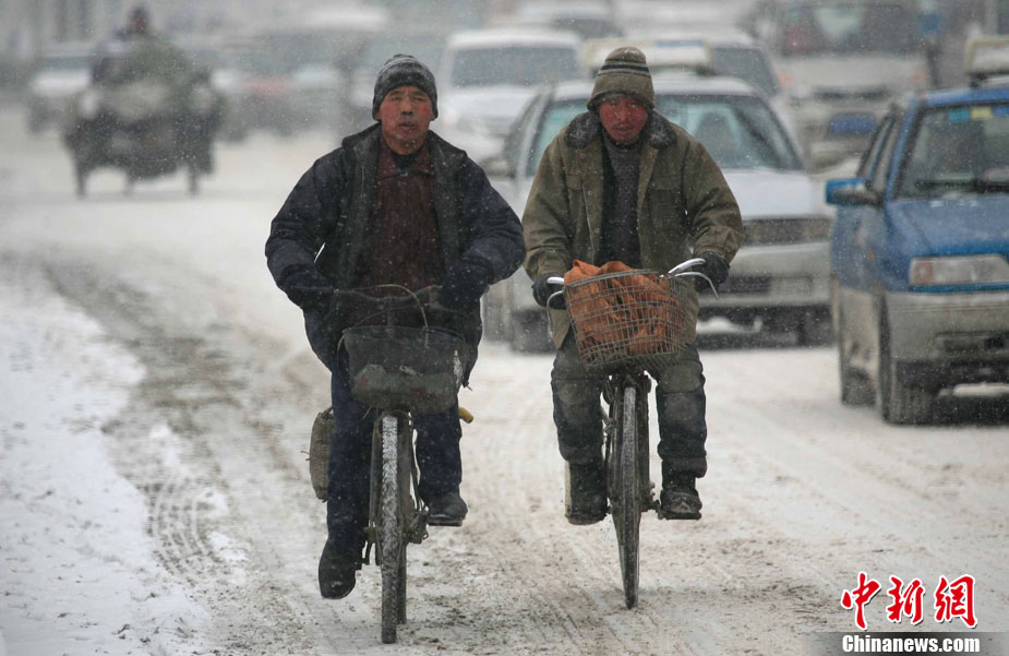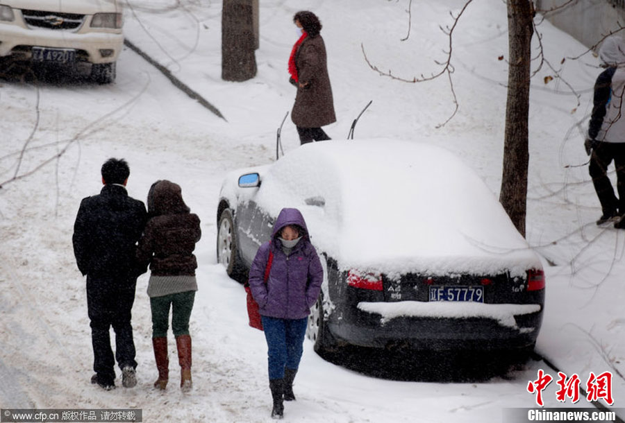 12月12日,沈陽市再次降雪降溫,連續(xù)的強降雪和低溫大風天氣給市民出行和交通運輸造成影響。 中新社發(fā) 黃金昆 攝