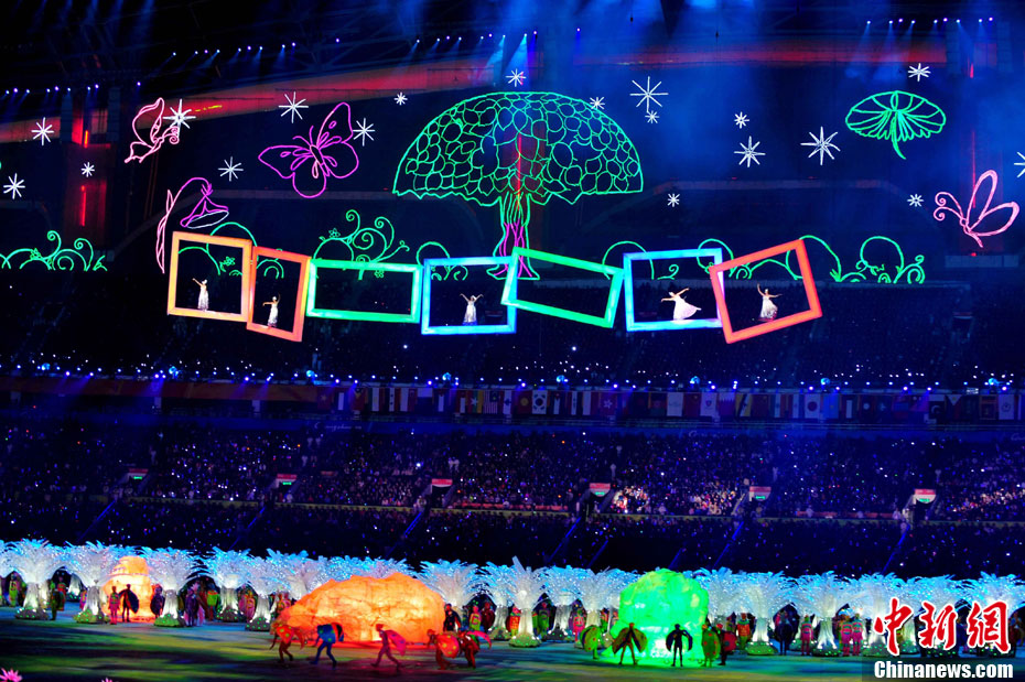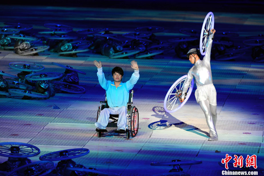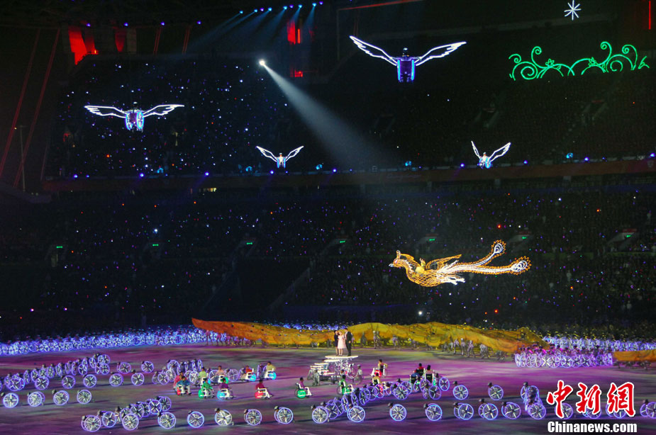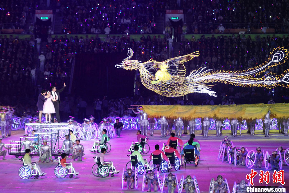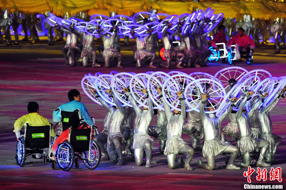 12日晚,廣州亞殘運(yùn)會(huì)開幕式在廣東奧林匹克體育中心舉行,開幕式展現(xiàn)了亞殘運(yùn)會(huì)溫馨、樸實(shí)、動(dòng)人的情懷。中新社記者 梁永強(qiáng) 攝