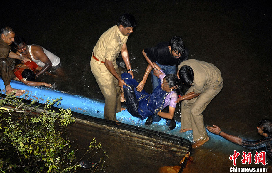 當(dāng)?shù)毓賳T稱,這輛巴士上的乘客當(dāng)時(shí)正在去參加婚禮的路上。司機(jī)在邁索爾市郊的一座橋上失去了對車輛的控制,墜入水庫。