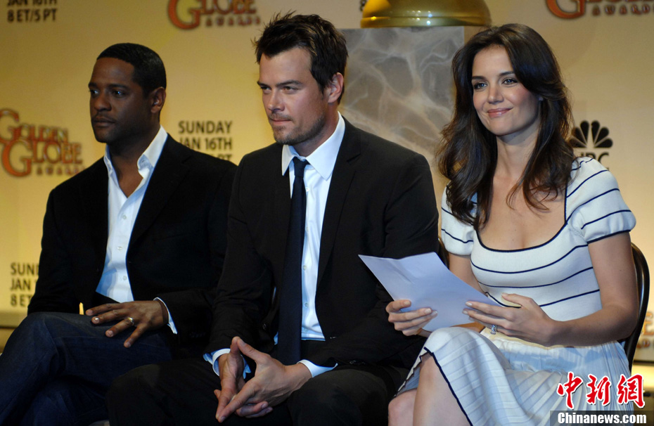 當?shù)貢r間12月14日凌晨,第68屆美國金球獎提名名單揭曉!秶醯难菡f》、《社群網(wǎng)戰(zhàn)》和《斗士》領跑電影類獎項提名。圖為好萊塢明星、湯姆·克魯斯的妻子凱蒂·霍爾姆斯宣讀提名名單。中新社發(fā) 張煒 攝