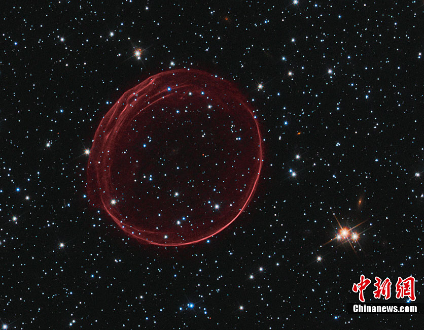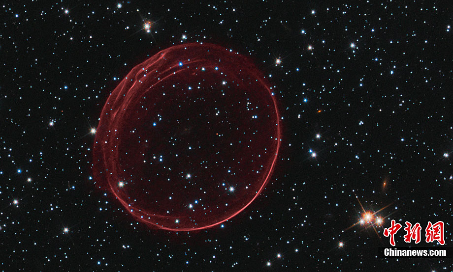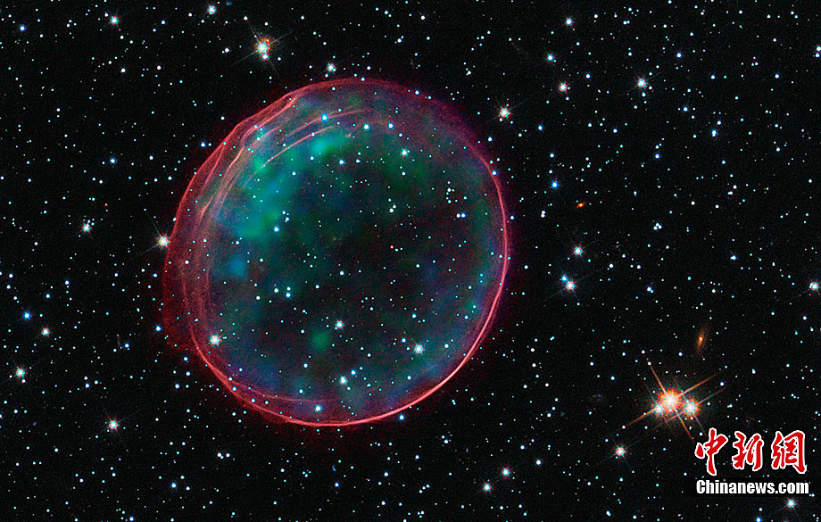 近日,美國(guó)哈勃太空望遠(yuǎn)鏡拍攝到了美麗的星系間“圣誕大氣泡”的照片。這個(gè)“圣誕大氣泡”是由400年前發(fā)生的超新星爆炸的殘骸形成的,它像一個(gè)精致的“殼”一樣漂浮在太空中。據(jù)悉,這個(gè)“圣誕大氣泡”是我們的臨近星系——大麥哲倫星云(Large Magellanic Cloud)中的一顆超新星在爆炸時(shí)發(fā)出的沖擊波及其噴射出來的物質(zhì) ,大麥哲倫星云與地球的距離為16萬光年?茖W(xué)家們將這個(gè)“圣誕大氣泡”氣圈命名為“SNR B0509-67.5”或者縮寫成“SNR 0509”。據(jù)悉,這個(gè)如氣泡狀的氣圈的直徑為23光年,并且正在以超過1100萬千米每小時(shí)的速度擴(kuò)散。另外,哈勃太空望遠(yuǎn)鏡拍攝到了“圣誕大氣泡”處于各種不同情況下的照片。