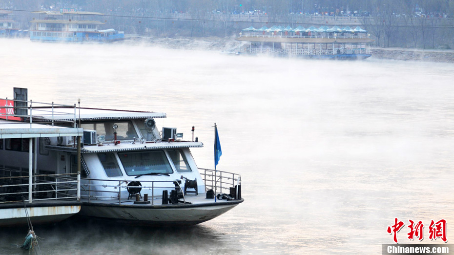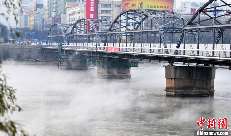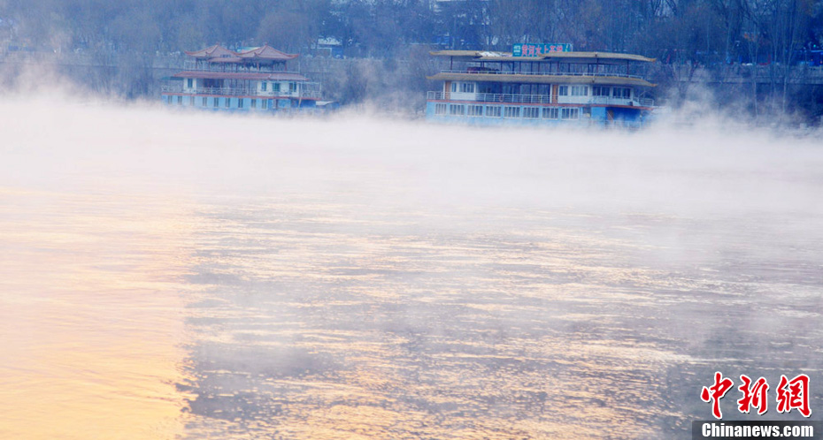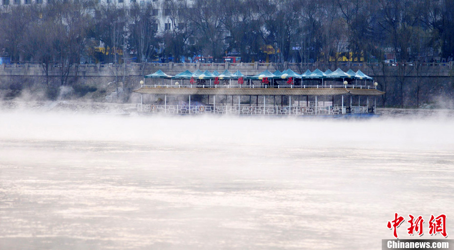 黃河蘭州段出現(xiàn)河霧景觀