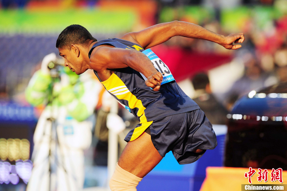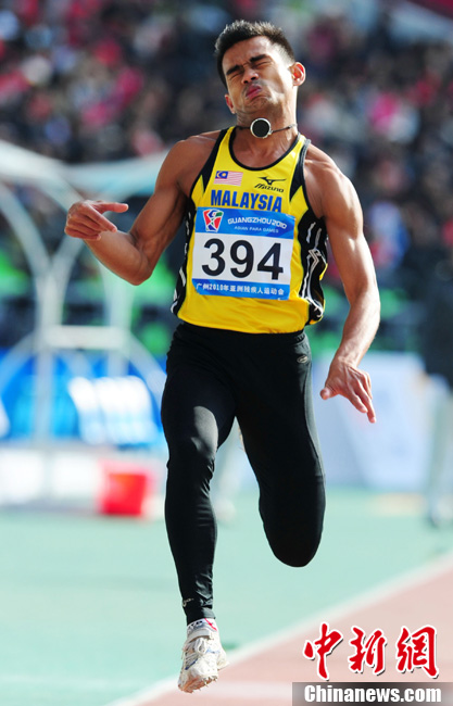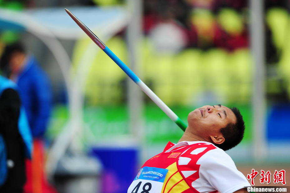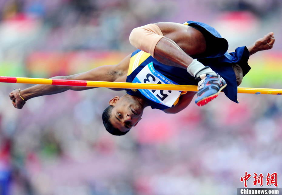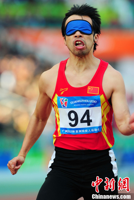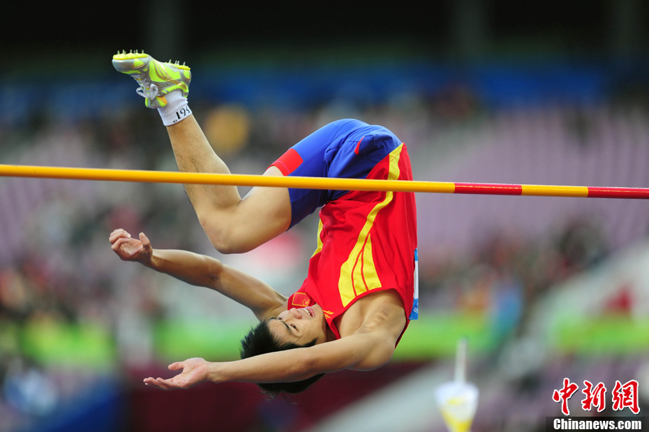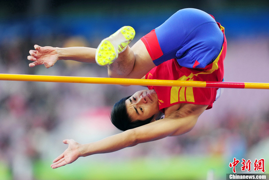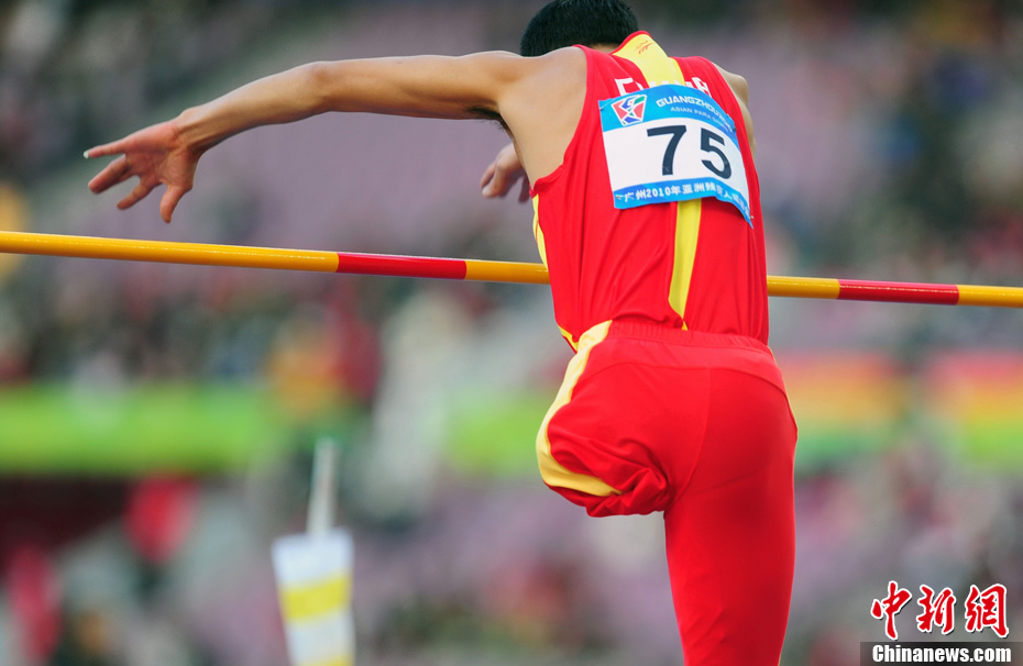 12月16日,廣州2010年亞殘運(yùn)會(huì)田徑賽進(jìn)入第3天,廣州遭遇寒流來襲氣溫降到最低2度,最高氣溫僅7度,亞洲選手在寒冷的氣候條件下參賽。圖為中國跳高選手李小文在比賽中。中新社記者 陳文 攝