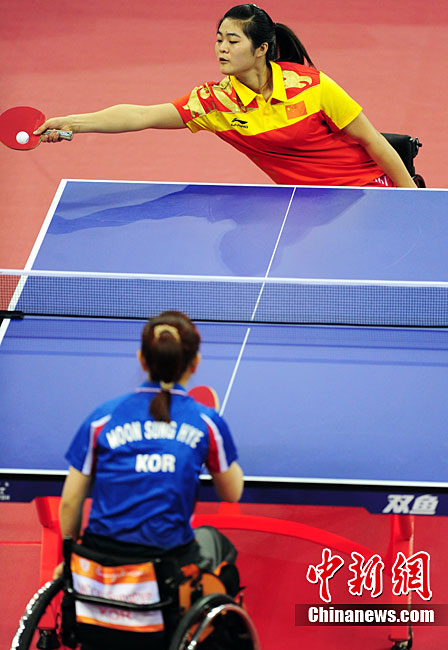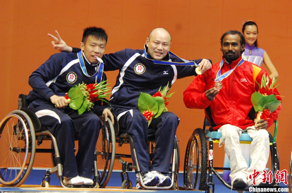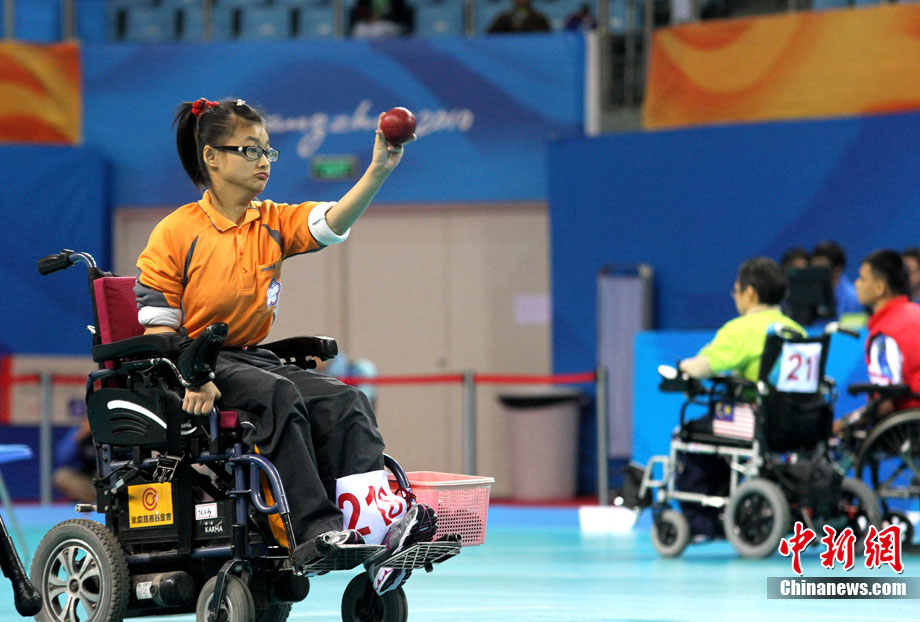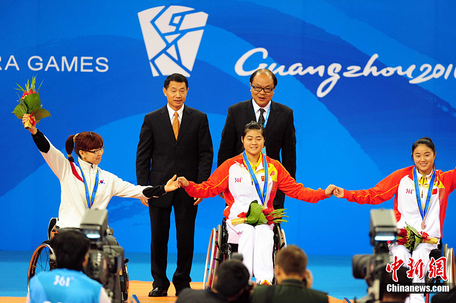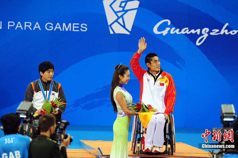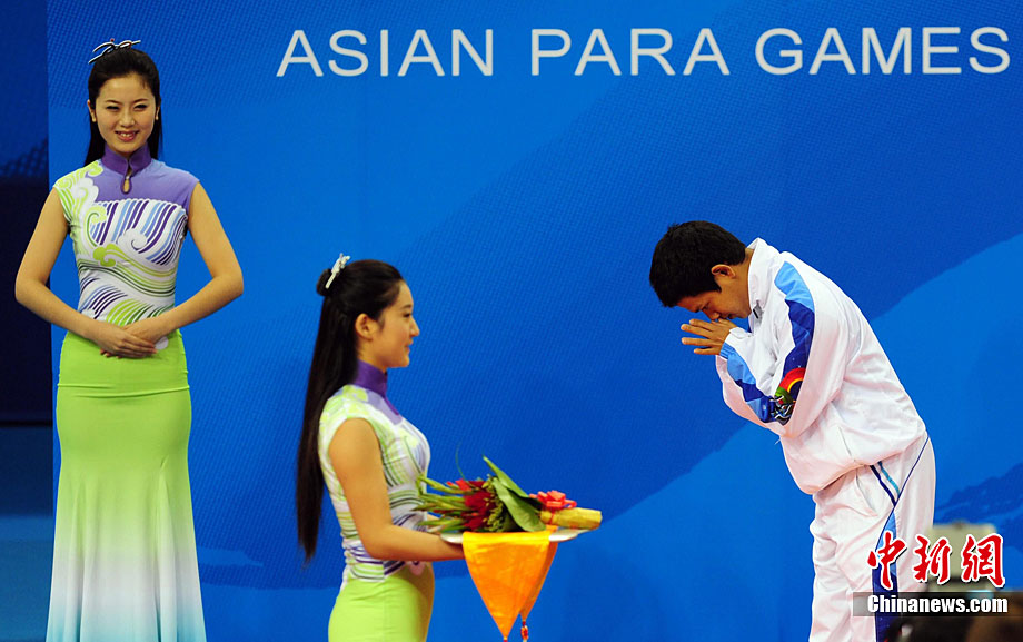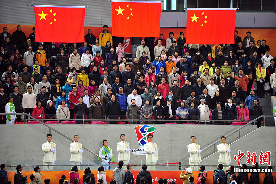 12月16日,廣州2010年亞殘運(yùn)會(huì)田徑賽進(jìn)入第3天,廣州遭遇寒流來襲氣溫降到最低2度,最高氣溫僅7度,亞洲選手在寒冷的氣候條件下參賽。圖為中國跳高選手李小文在比賽中。中新社記者 陳文 攝