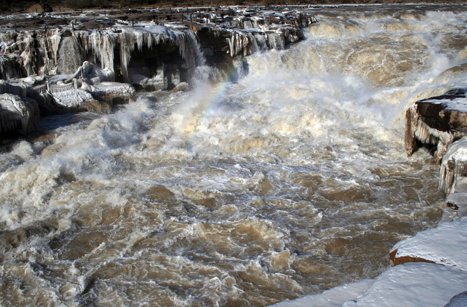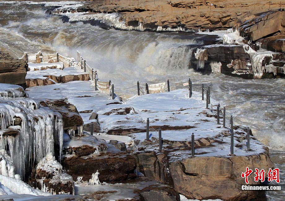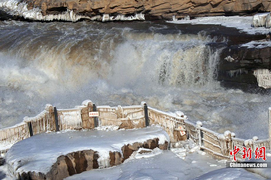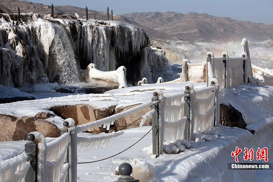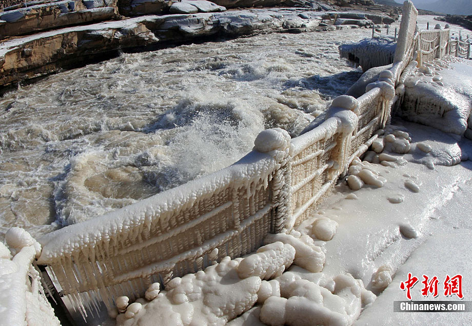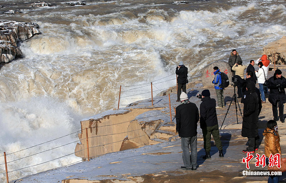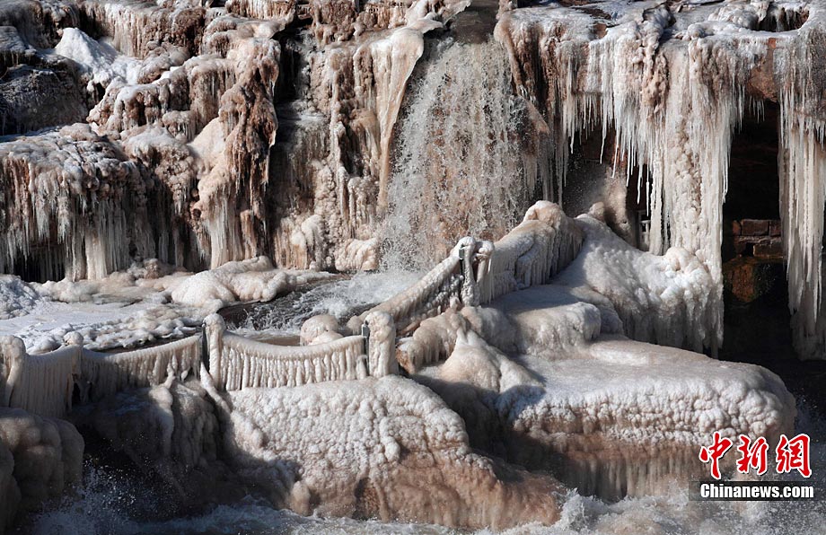12月17日,黃河壺口冰凍瀑布在陽(yáng)光照射下異常美麗,引得八方游客前來觀賞美景。據(jù)了解,這是由于近期受冷空氣影響,形成的美麗自然景觀。張旦 攝 圖片來源:CNSPHOTO