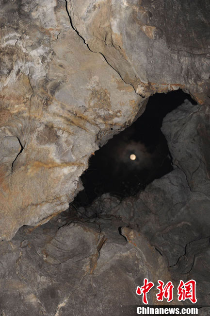 12月22日凌晨,廣東肇慶七星巖“出米洞”景區(qū)冬至日出現(xiàn)“頭上有明月,腳下無暗影”月光垂照山洞的奇趣天文地理景象,吸引了北京、廣州、肇慶三地天文地理氣象科研人員。中國科學(xué)院國家天文臺研究員張濟(jì)同稱,月亮垂照出米洞奇觀必須符合滿月時分,冬至日,月亮必須到達(dá)北緯23°08′上空三個條件。他說,下一次出米洞看月光垂照要等19年,本世紀(jì)100年僅可能看到6次這樣的奇觀。圖為冬至日凌晨的端州出米洞上空的月亮。