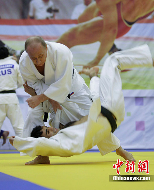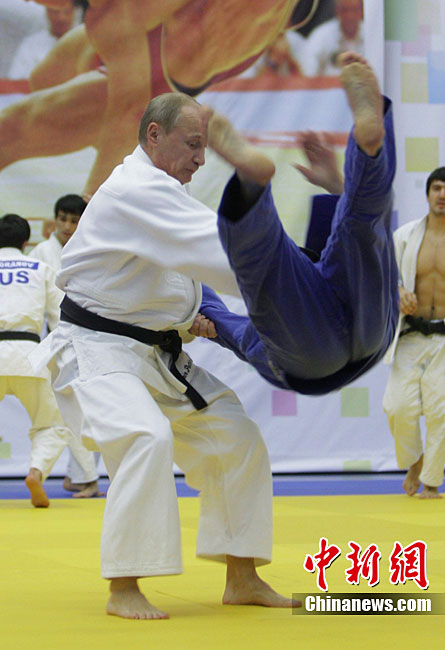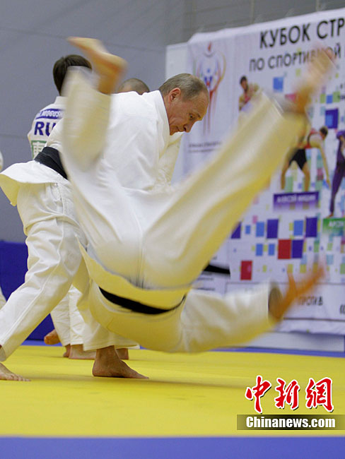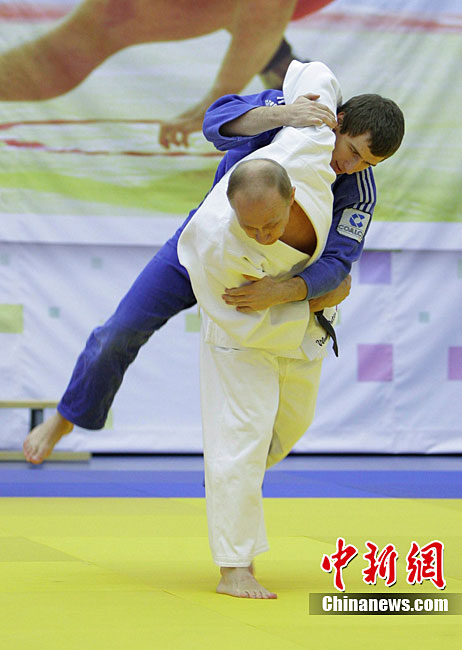 當(dāng)?shù)貢r(shí)間12月22日,俄羅斯總理普京來到圣彼得堡視察了一家柔道俱樂部,并參加了該俱樂部內(nèi)的一堂柔道訓(xùn)練課。圖為普京正在與運(yùn)動(dòng)員切磋柔道。