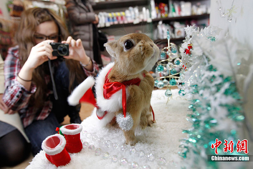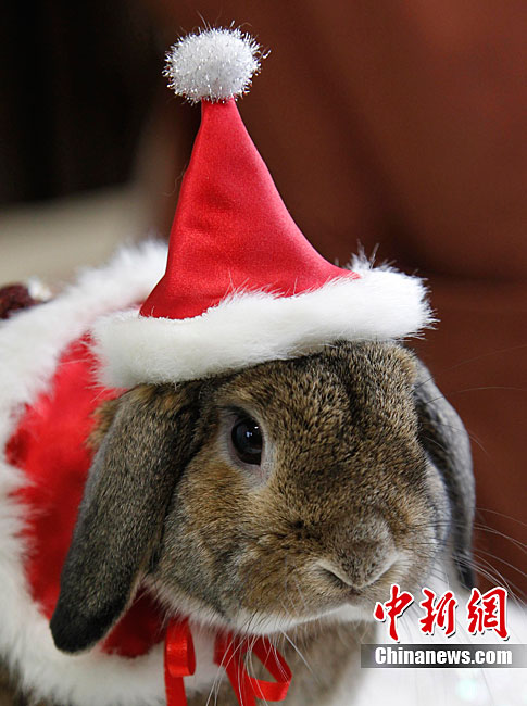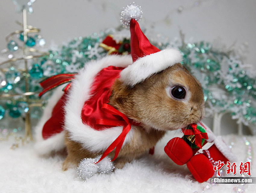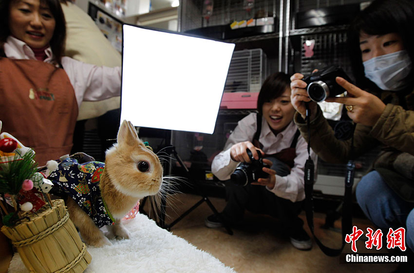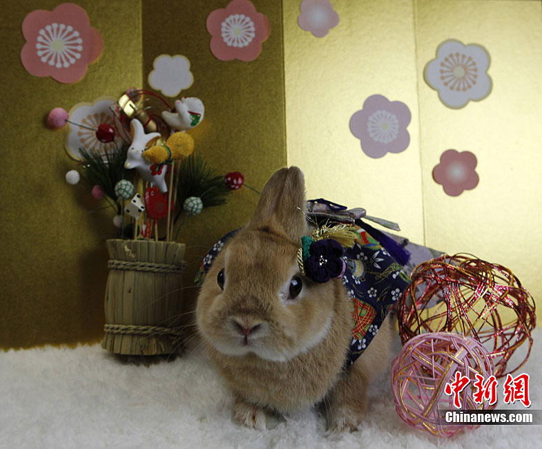 12月21日,日本橫濱一家寵物店的小兔子穿上傳統(tǒng)和服,迎接即將到來的圣誕節(jié)和兔年新年。日本自明治維新后采用公歷紀年,元旦即是兔年新年的開始。